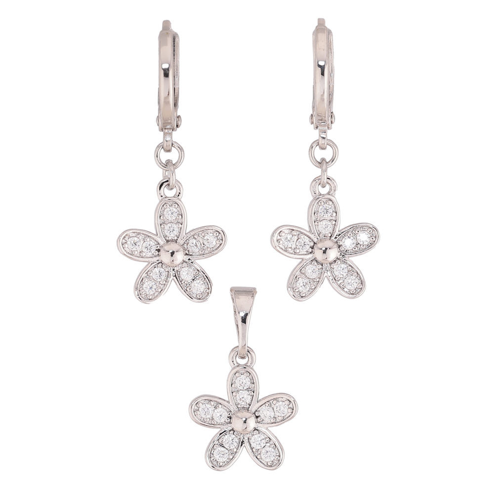 Набір Xuping колір Родій Сережки Кулон "Квіточки з кристалами"