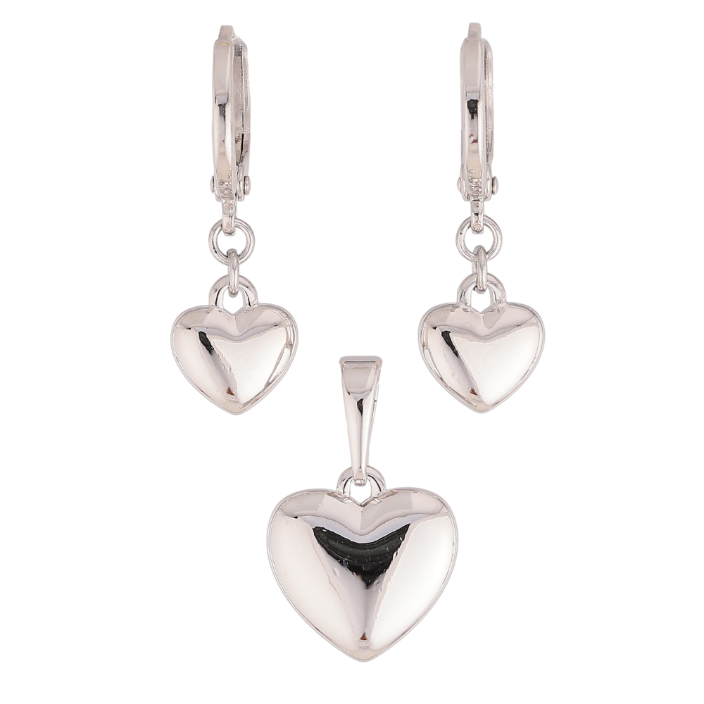 Набір Xuping колір Родій Сережки Кулон "Сердечки" сер. 7х8мм, кул. 11х12мм