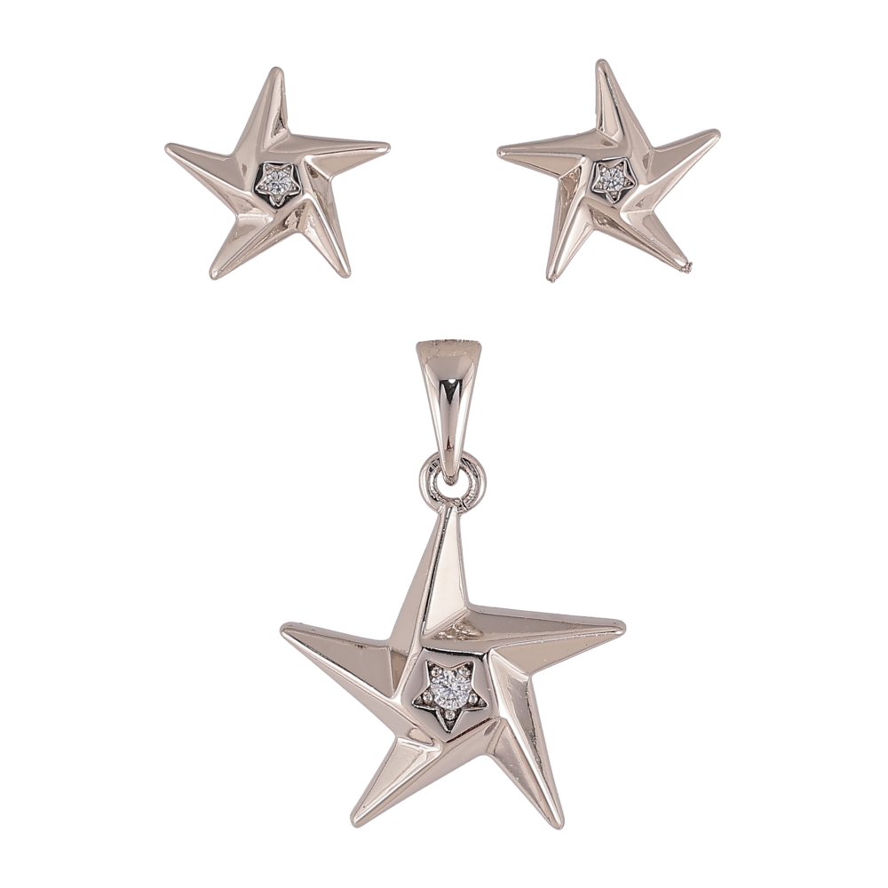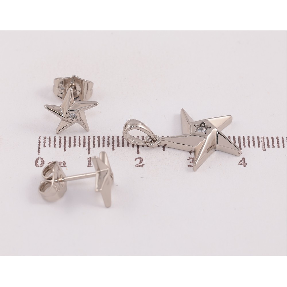 Набір Xuping колір Родій Сережки Кулон "Зірки з кристалами"
