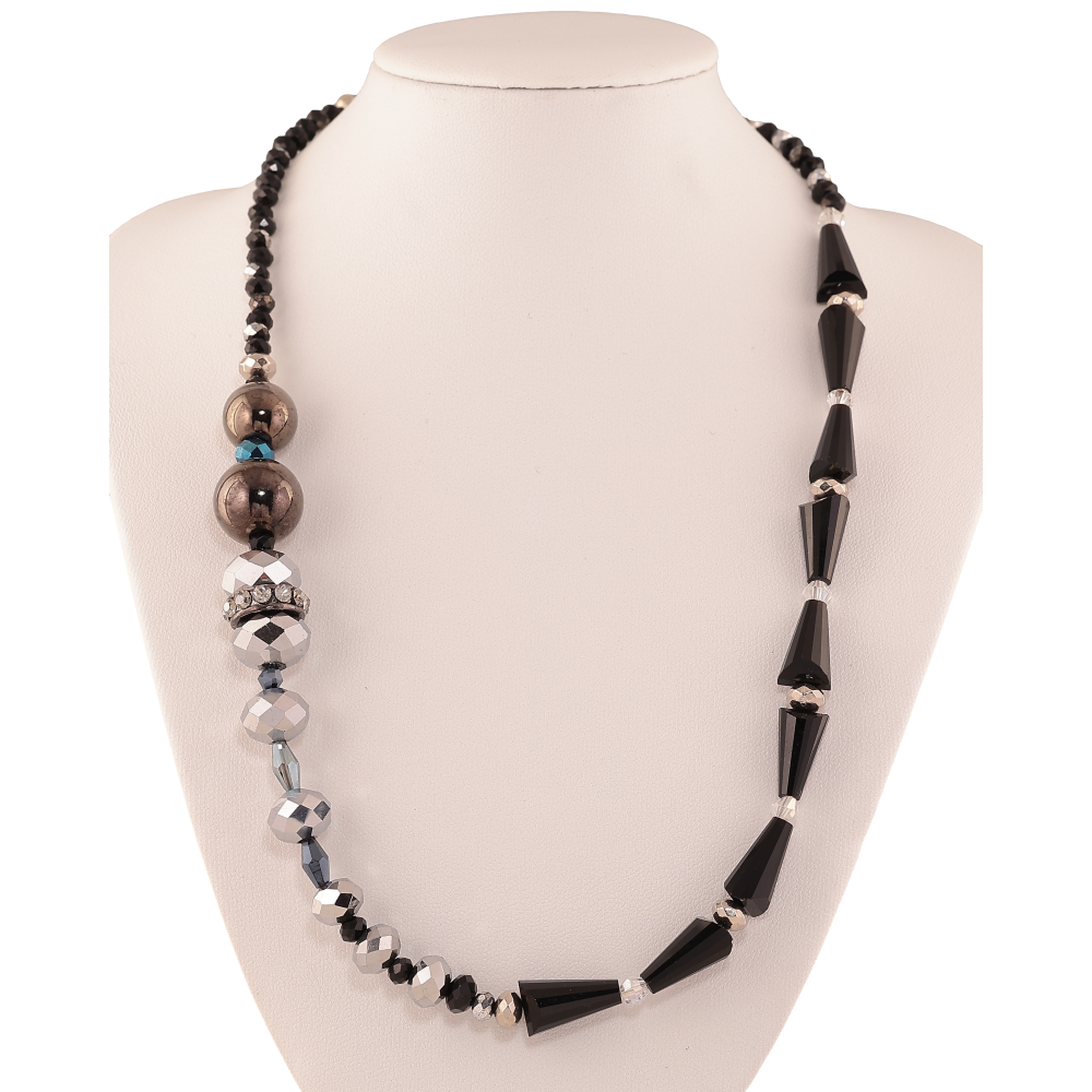 Намисто "Візерунок з чорно-сріблястих намистин" довжина 45-50см х 4-14мм