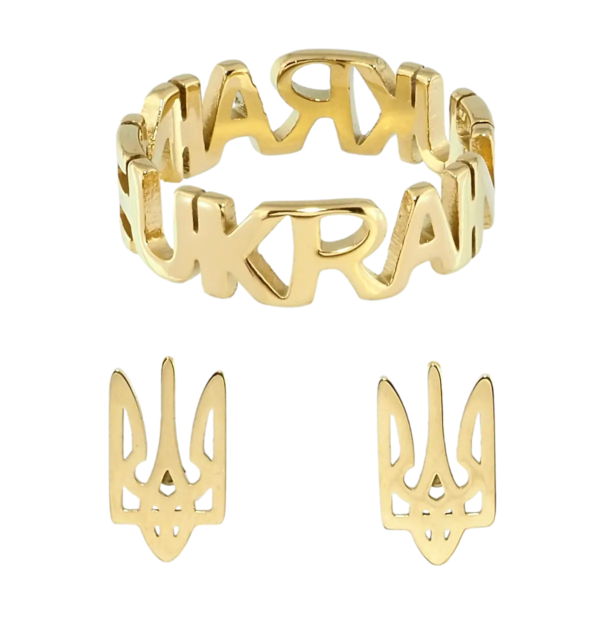 дні:год:хв:секКод: 186967Набір Xuping TTM Stainless Steel колір 14К Сережки Каблучка Герб України та Ukraine- 16