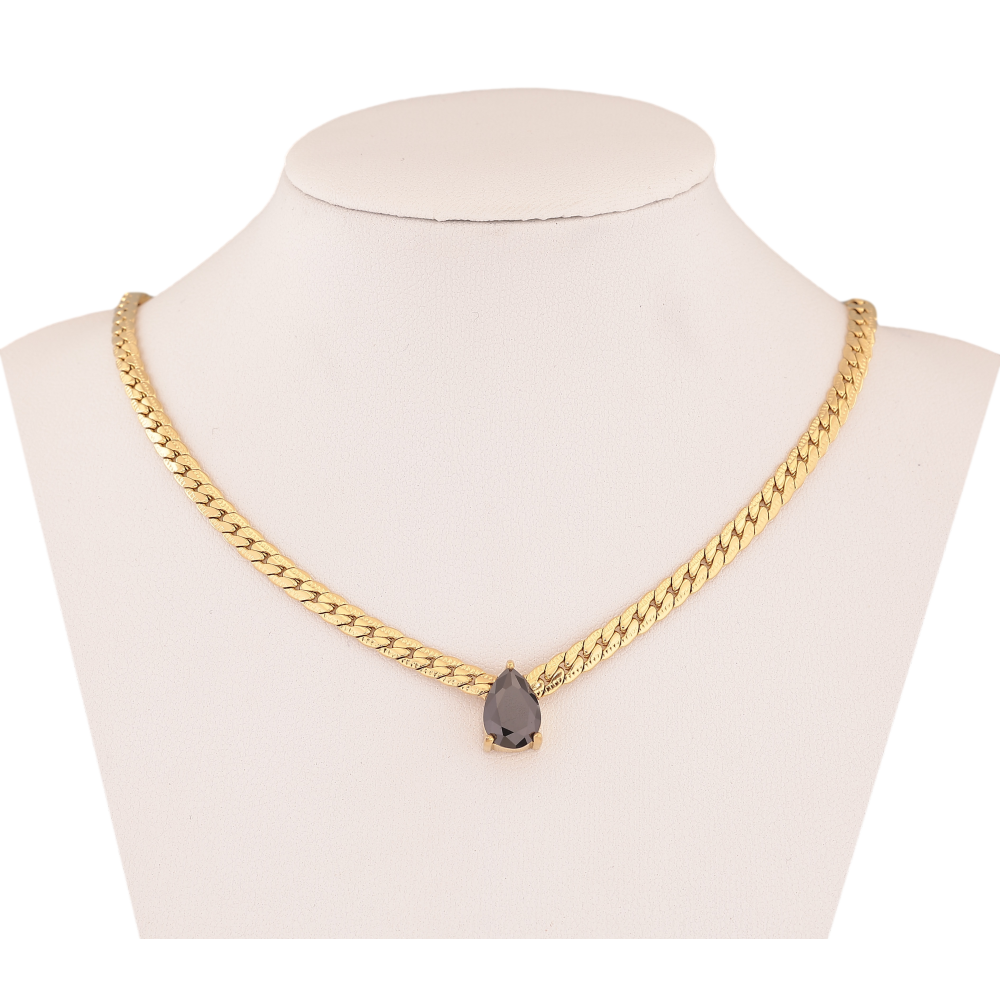 Підвіска на ланцюжку Нержавіюча сталь "Чорна кристальна крапелька" довжина 41-46см х 4мм