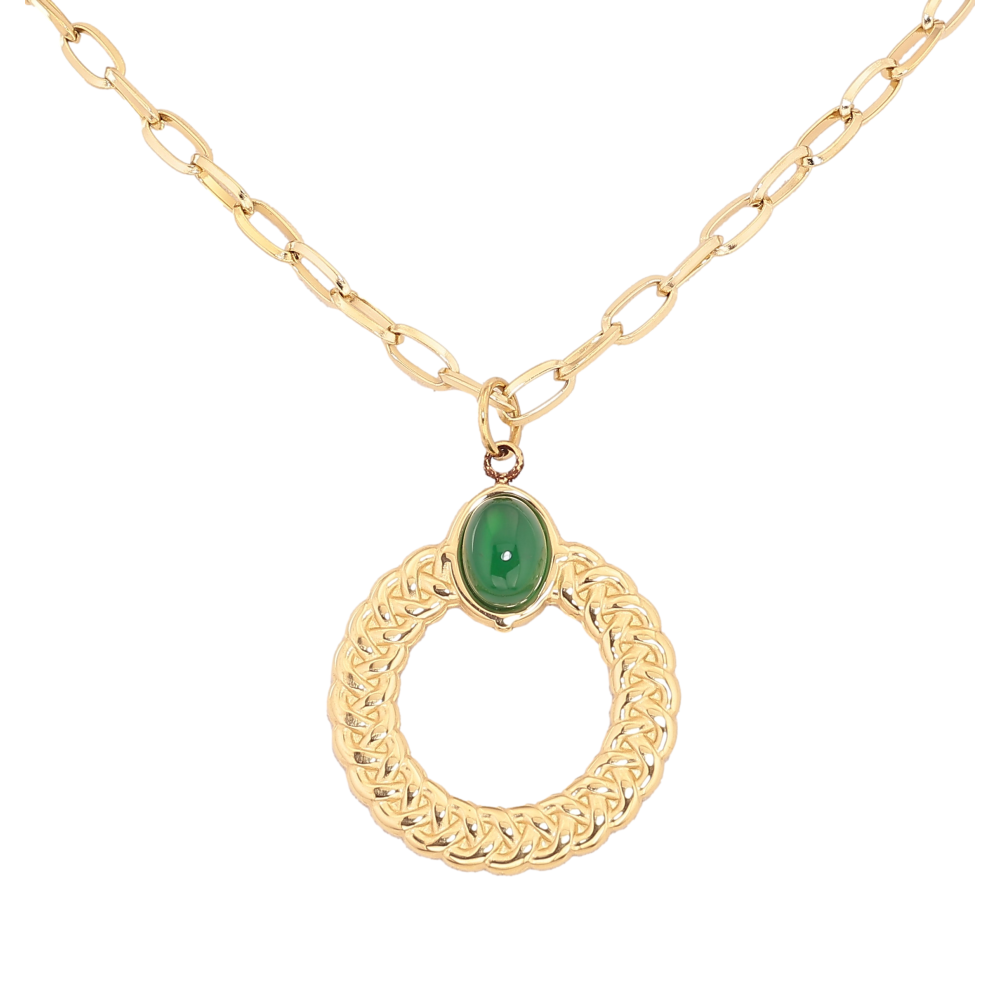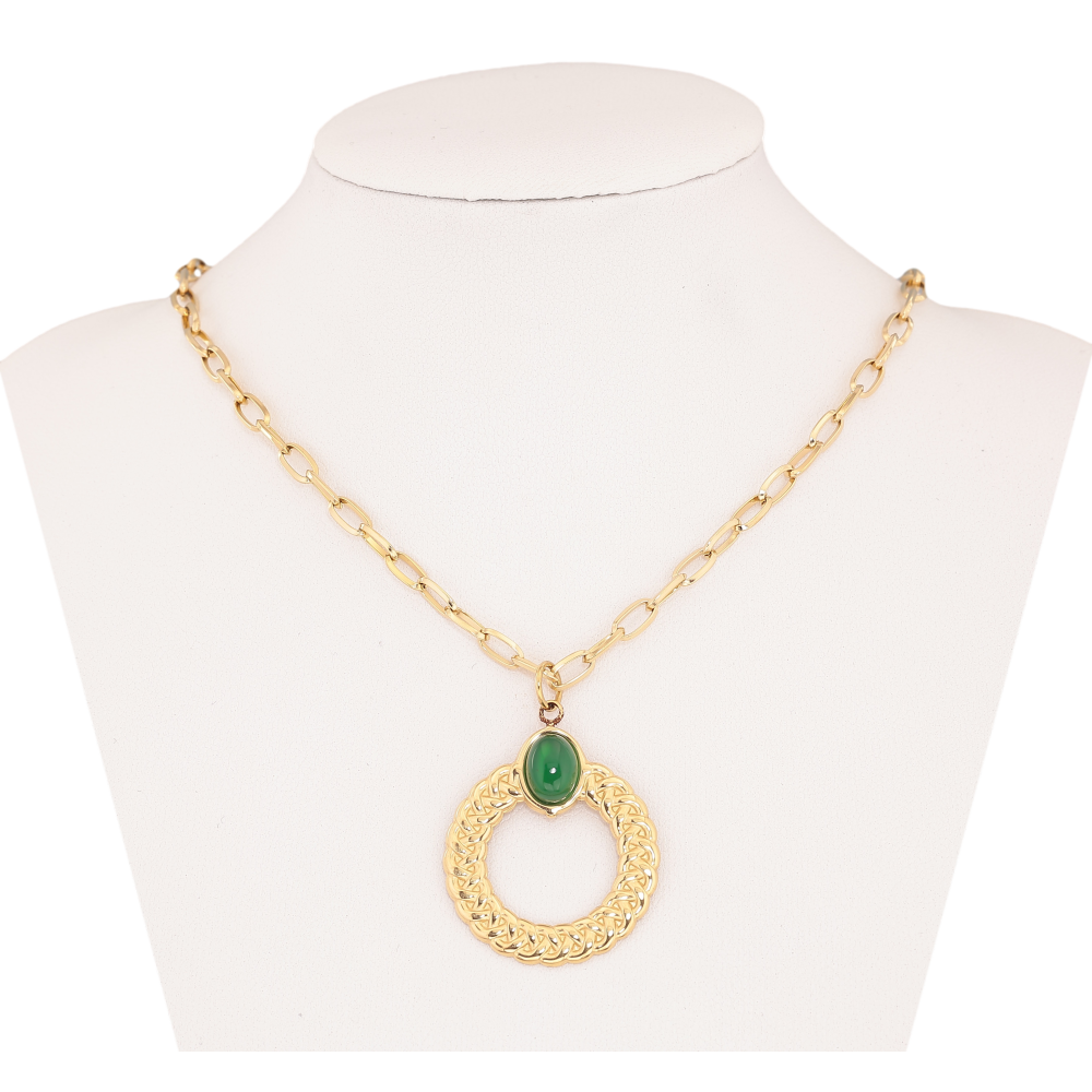 Підвіска на ланцюжку Нержавіюча сталь "Кільце з зеленим каменем" довжина 47-52см х 3мм