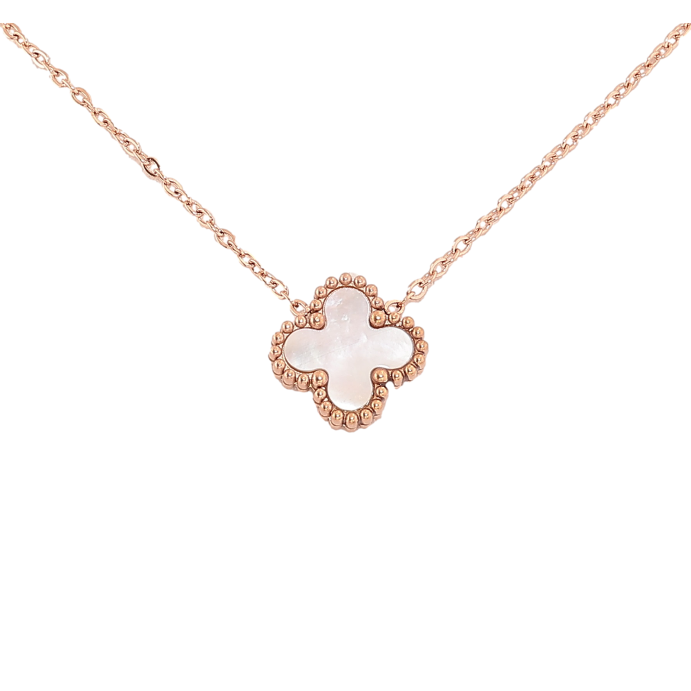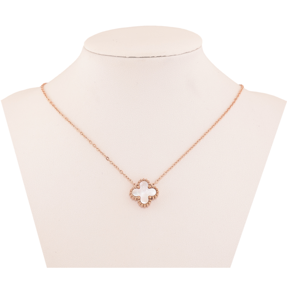 Підвіска на ланцюжку Нержавіюча сталь "Конюшина з перламутровою вставкою" довжина 40-45см х 1.5-6мм