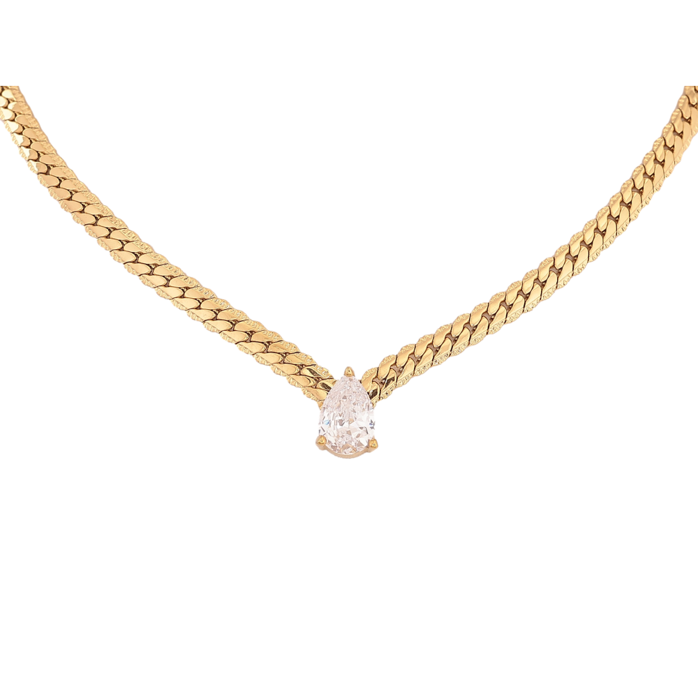 Підвіска на ланцюжку Нержавіюча сталь "Кристальна крапелька" довжина 41-46см х 4мм