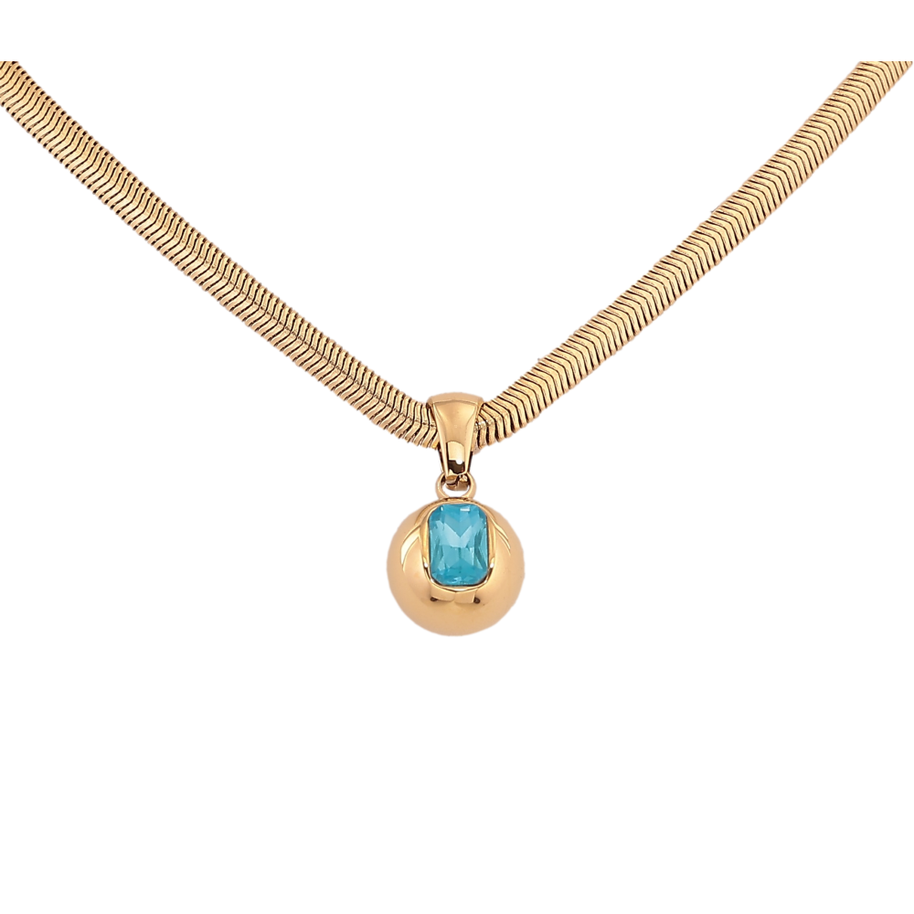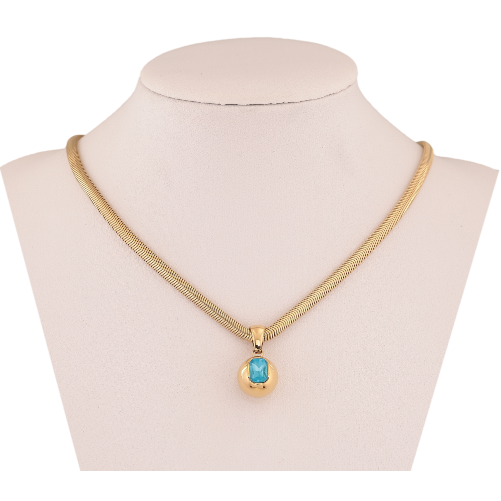 Підвіска на ланцюжку Нержавіюча сталь "Куля з блакитним кристалом" довжина 42-47см х 3мм