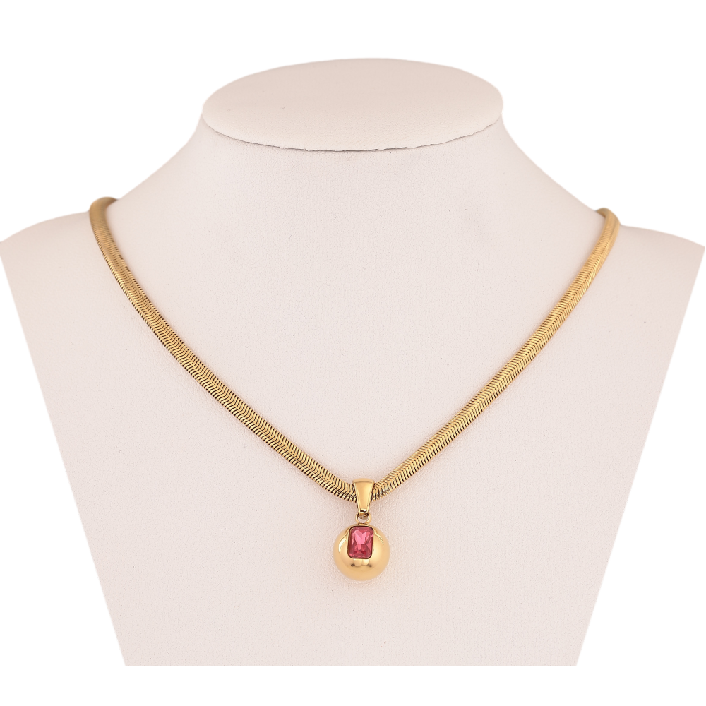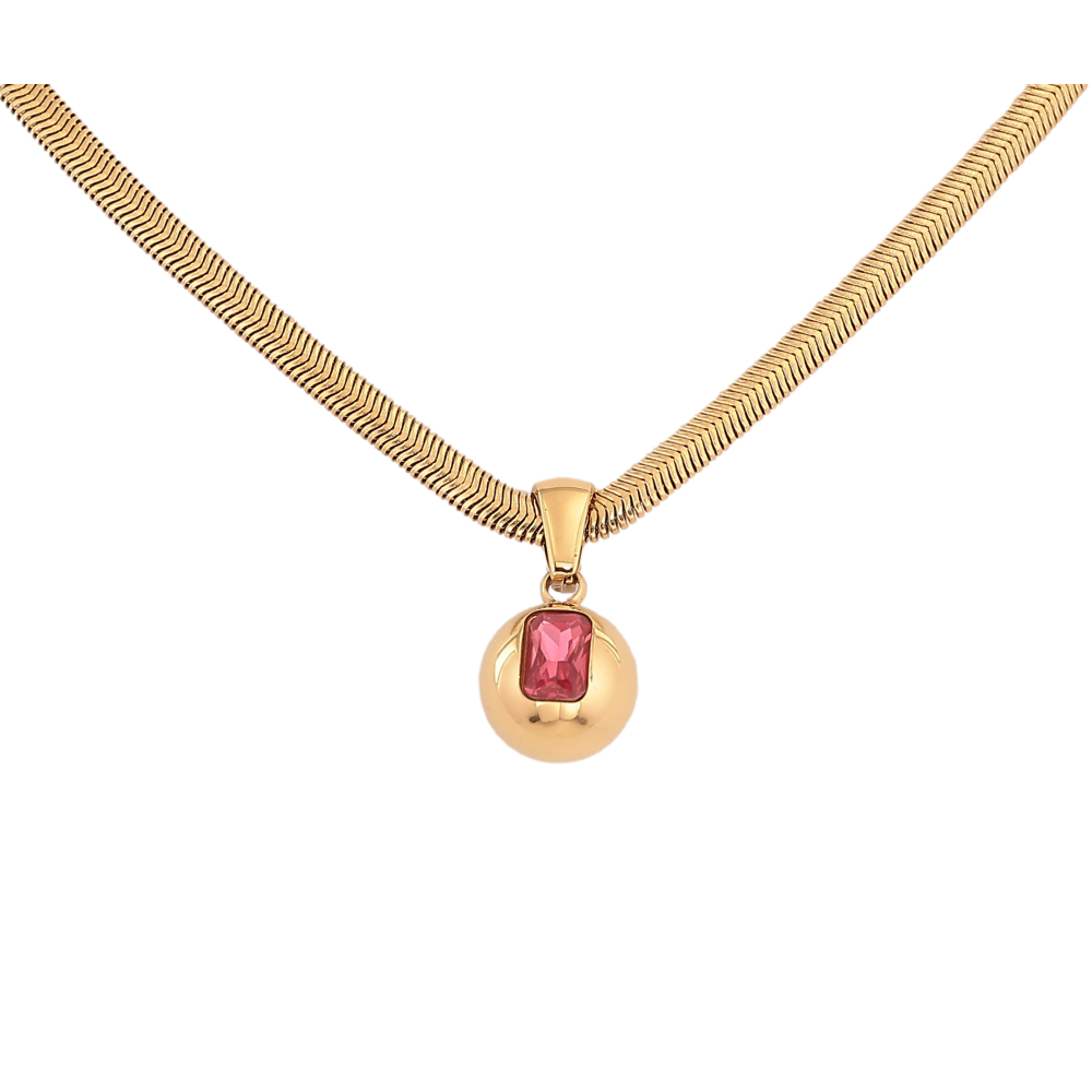 Підвіска на ланцюжку Нержавіюча сталь "Куля з рожевим кристалом" довжина 41-46см х 3мм