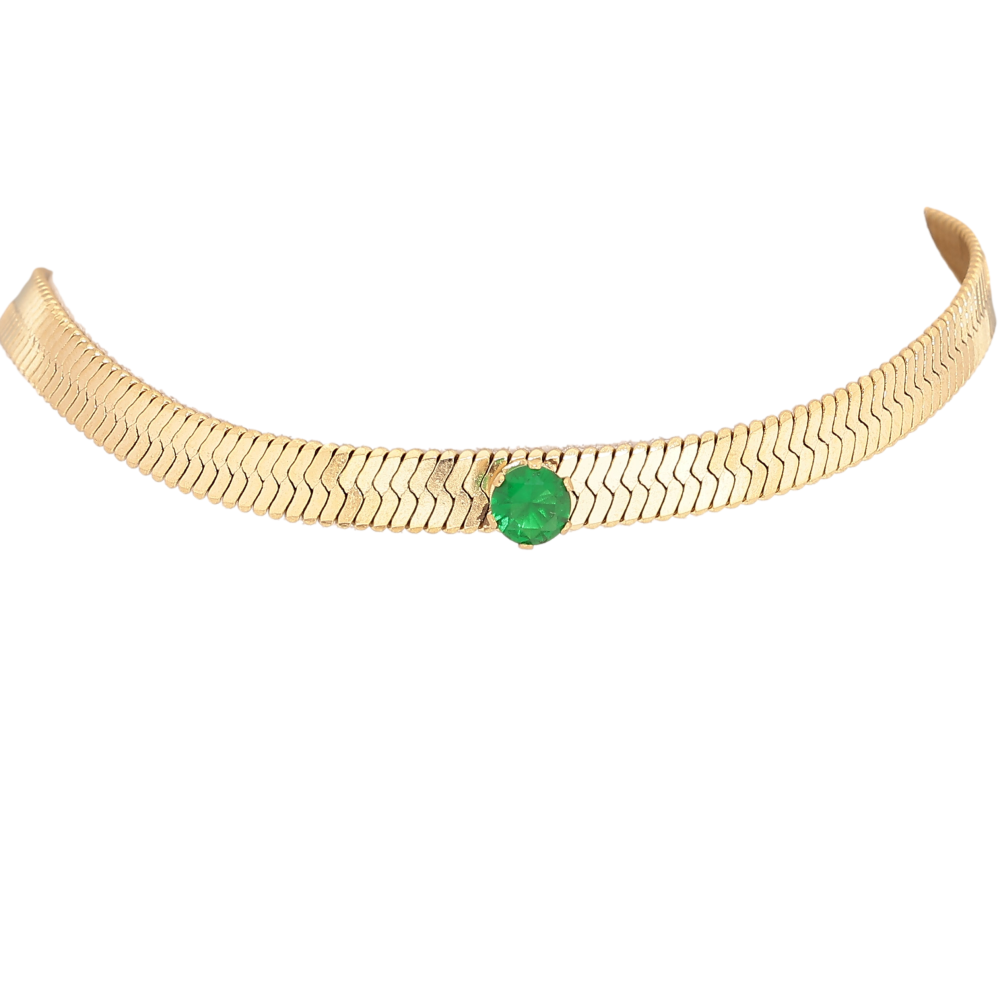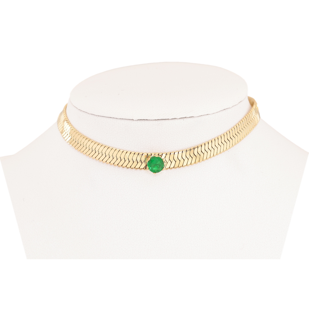 Підвіска на ланцюжку Нержавіюча сталь "Ланцюжок із зеленим кристалом" довжина 35-40см х 5мм