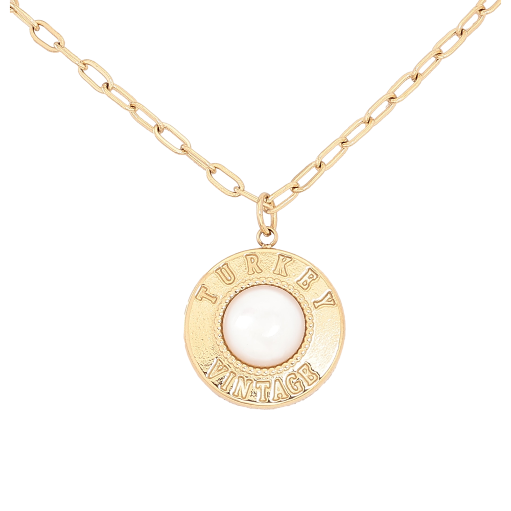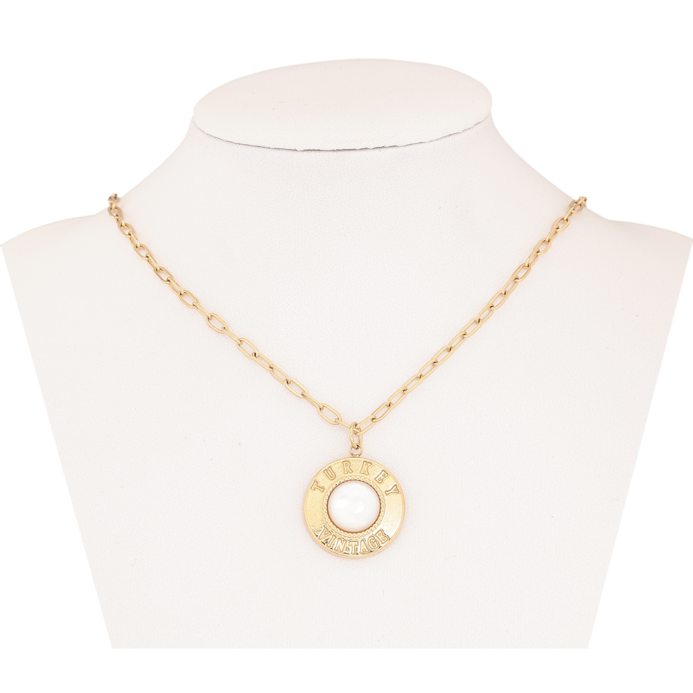Підвіска на ланцюжку Нержавіюча сталь "Медальйон з написом Turkey vintage та білим кристалом" довжина 41-46см х 3мм