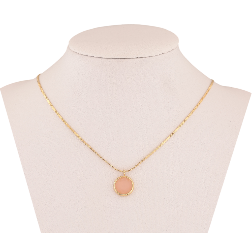 Підвіска на ланцюжку Нержавіюча сталь "Персиковий кристал, ø 10мм" довжина 41-46см х 1мм