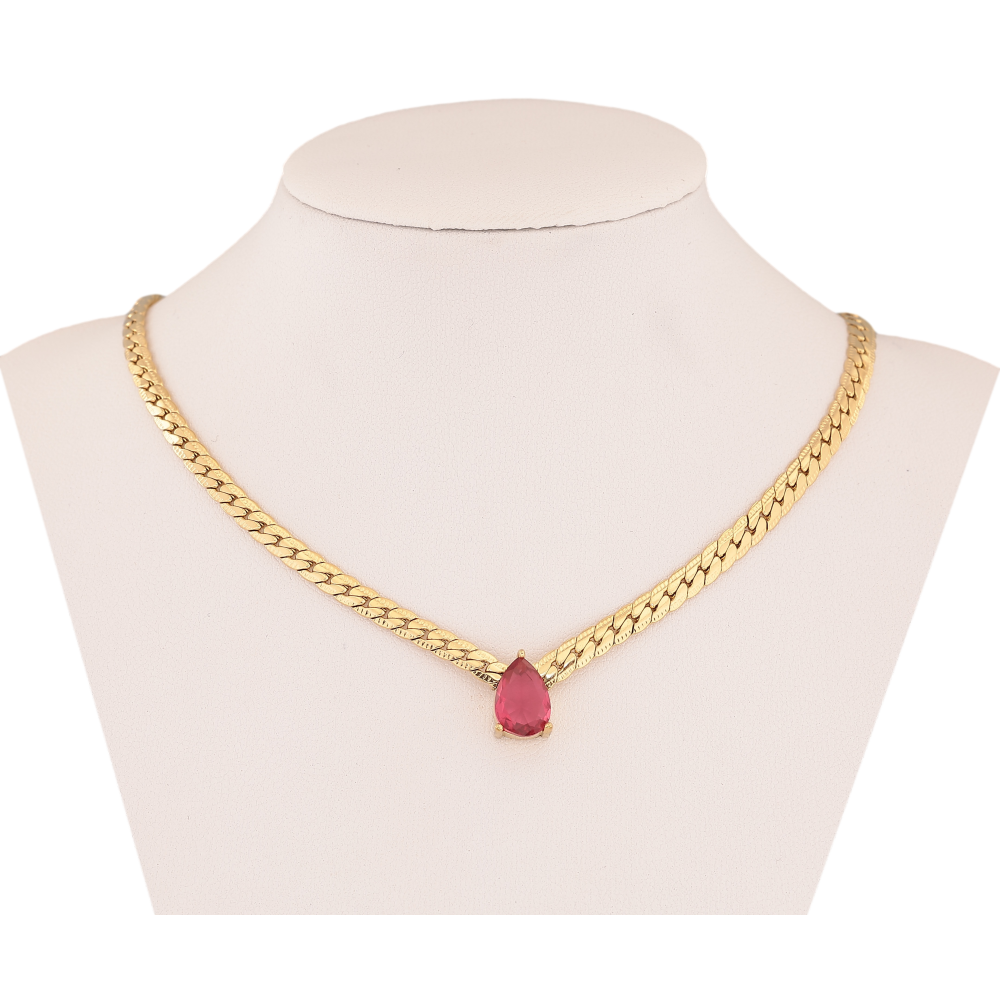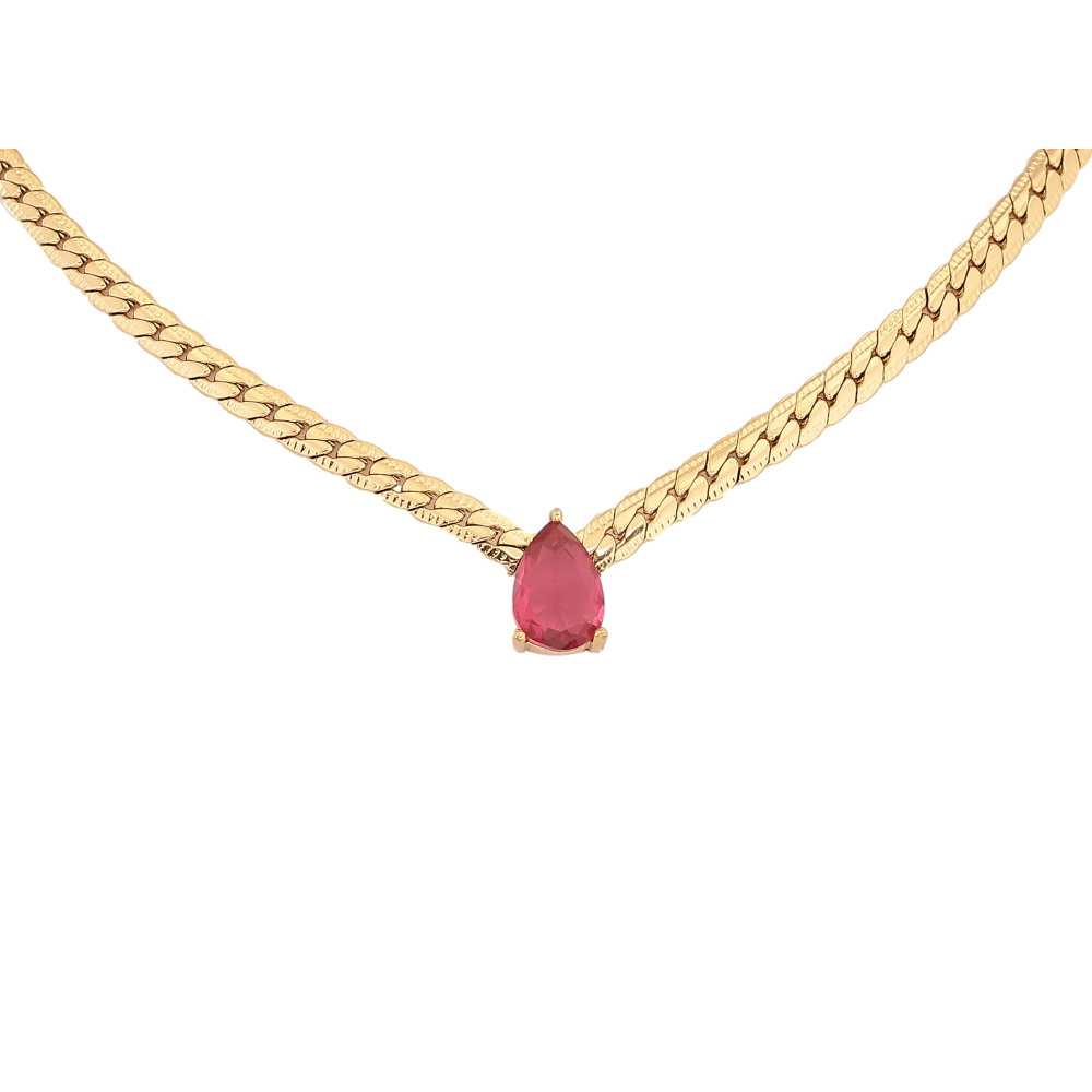 Підвіска на ланцюжку Нержавіюча сталь "Рожева кристальна крапелька" довжина 41-46см х 4мм