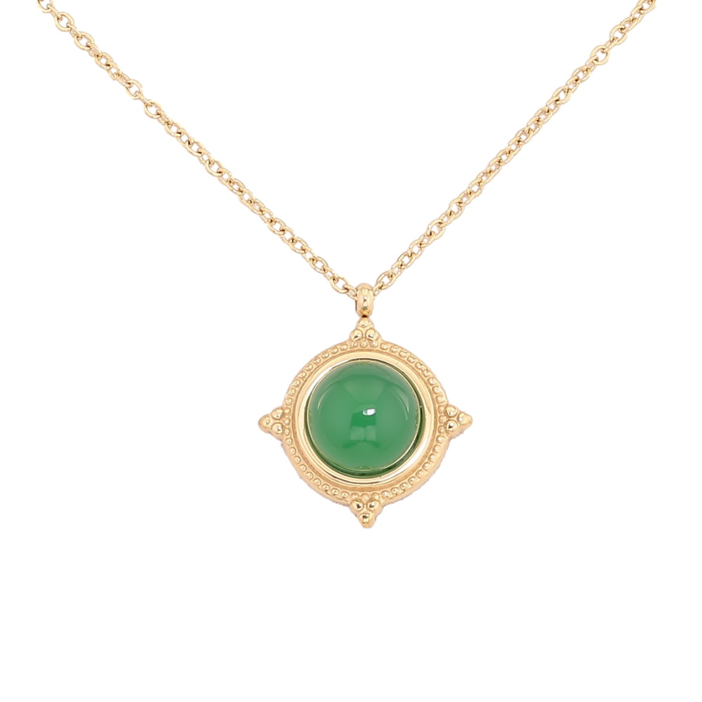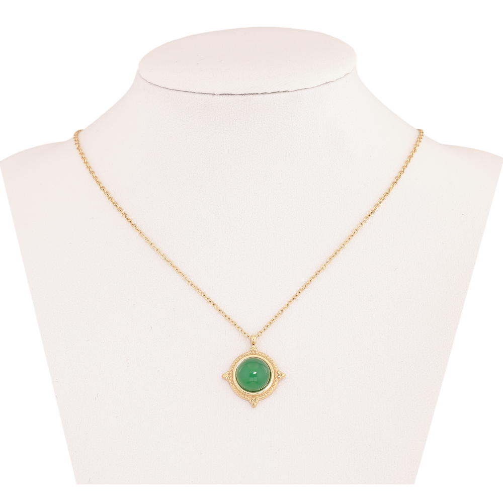Підвіска на ланцюжку Нержавіюча сталь "Візерунок із зеленою вставкою" довжина 41-46см х 1мм
