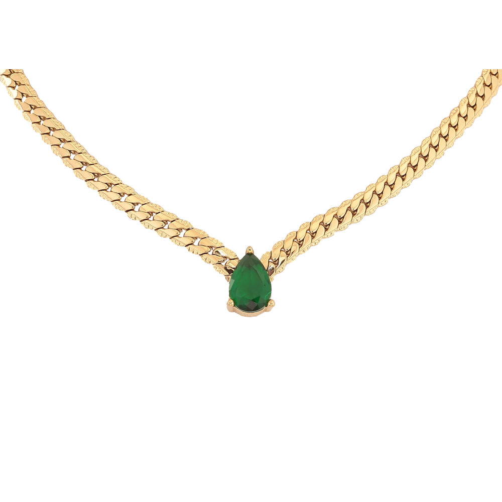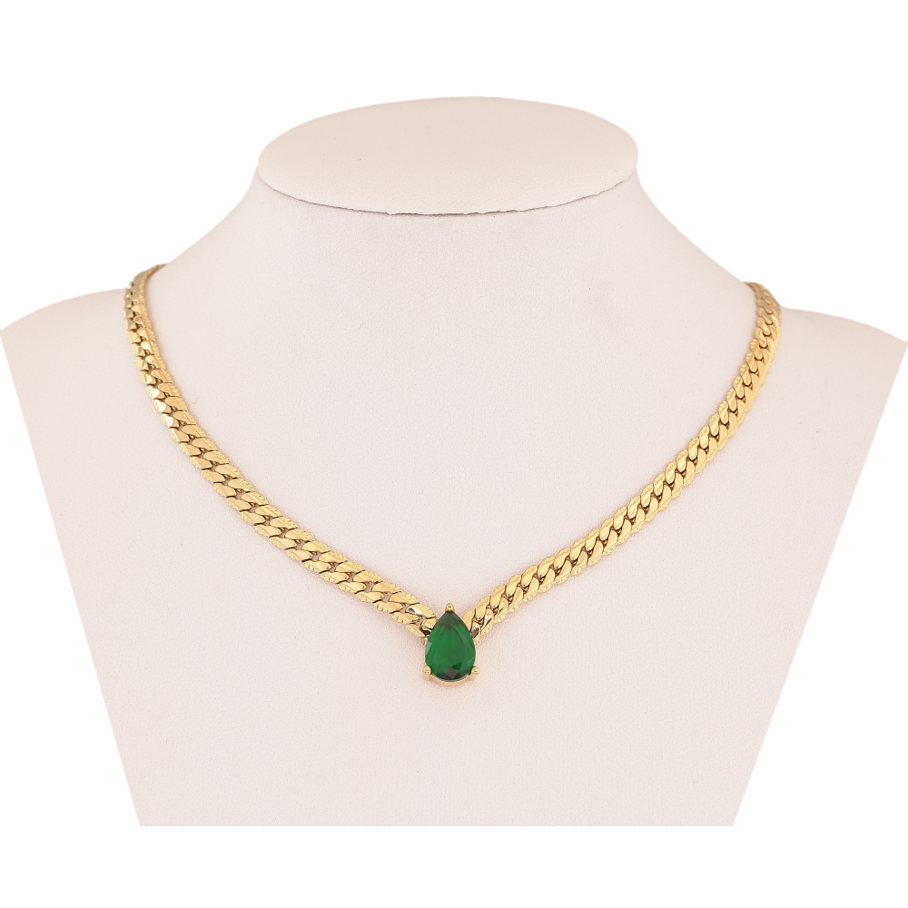 Підвіска на ланцюжку Нержавіюча сталь "Зелена кристальна крапелька" довжина 41-46см х 4мм