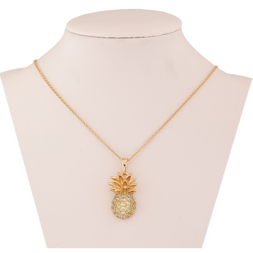 Підвіска на ланцюжку Xuping колір Позолота 14K "Ананас із салатовими кристалами" довжина 40-45см х 1.5мм