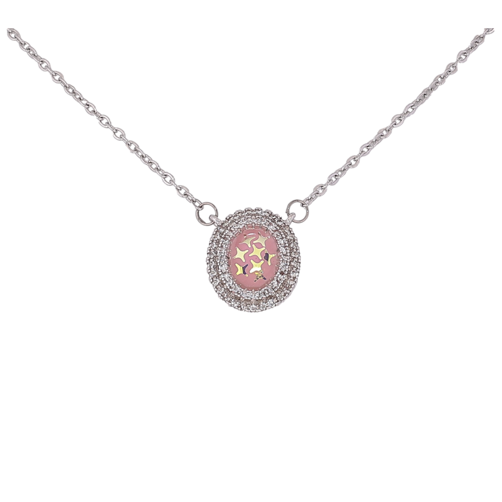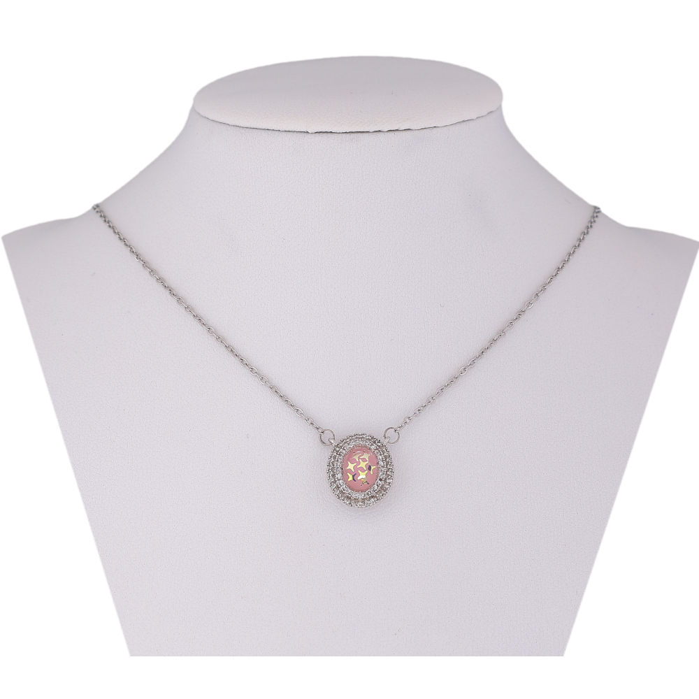 Підвіска на ланцюжку Xuping колір Родій "Блискітки з емаллю в обрамленні кристалів" розмір 43-48см х 1мм