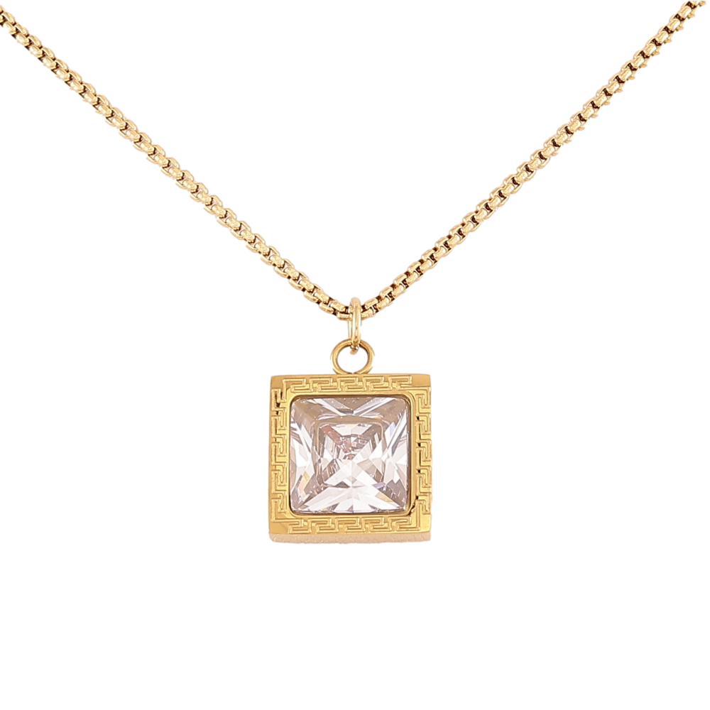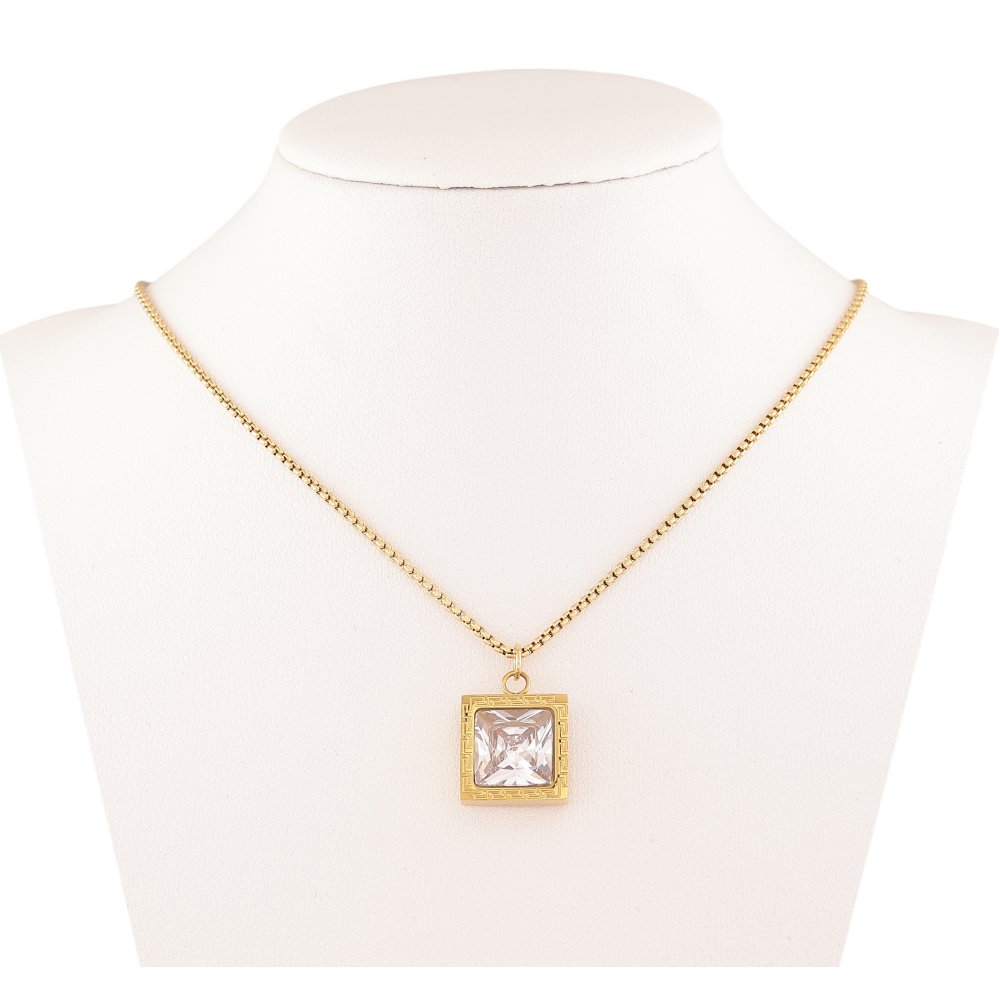 Підвіска на ланцюжку Xuping ТТМ Stainless Steel колір 14К "Кристал, 13х13мм" довжина 45-50см х 1мм