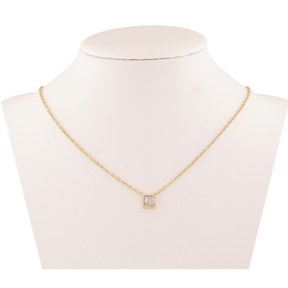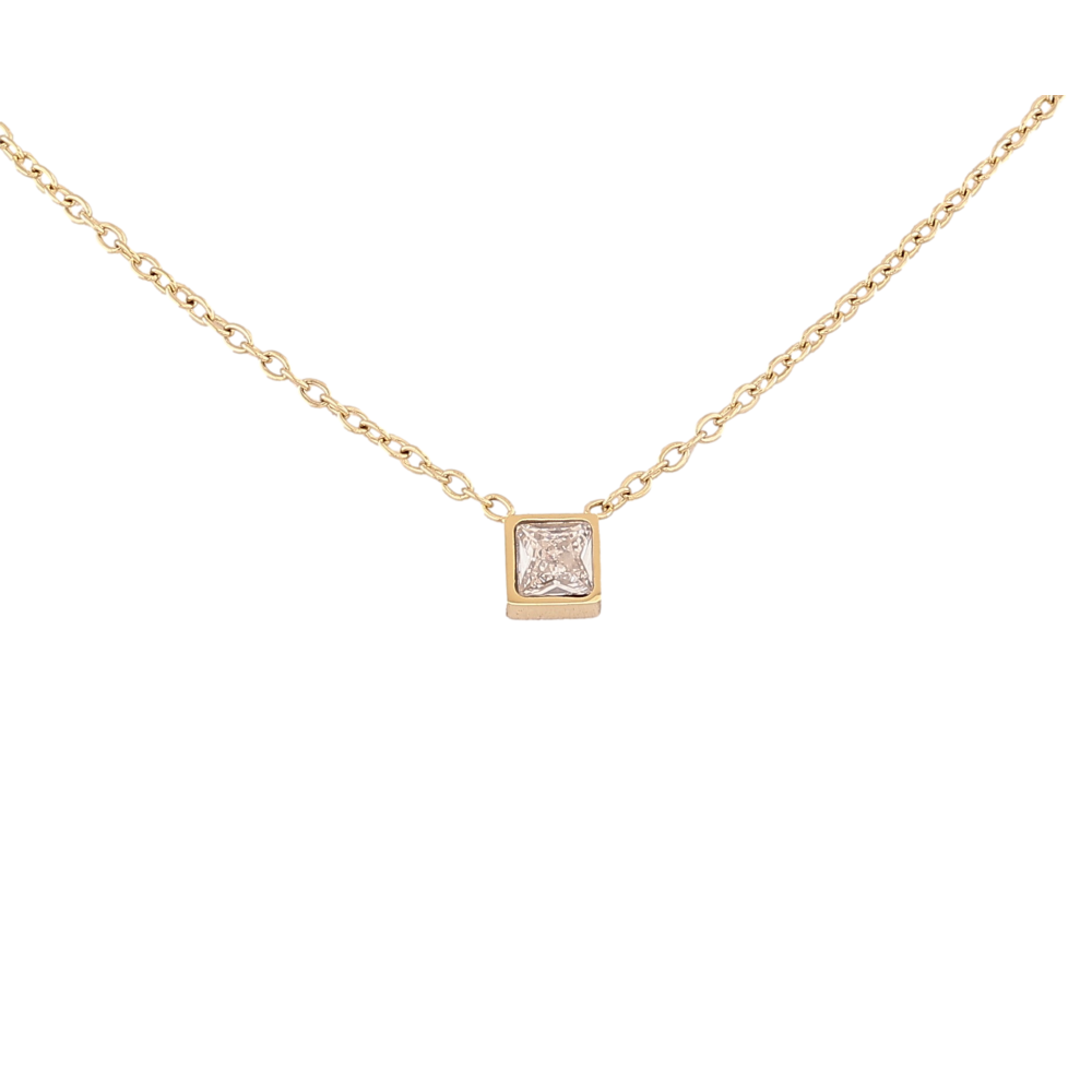 Підвіска на ланцюжку Xuping ТТМ Stainless Steel колір 14К "Кристал, 5х5мм" довжина 44-49см х 1.5мм
