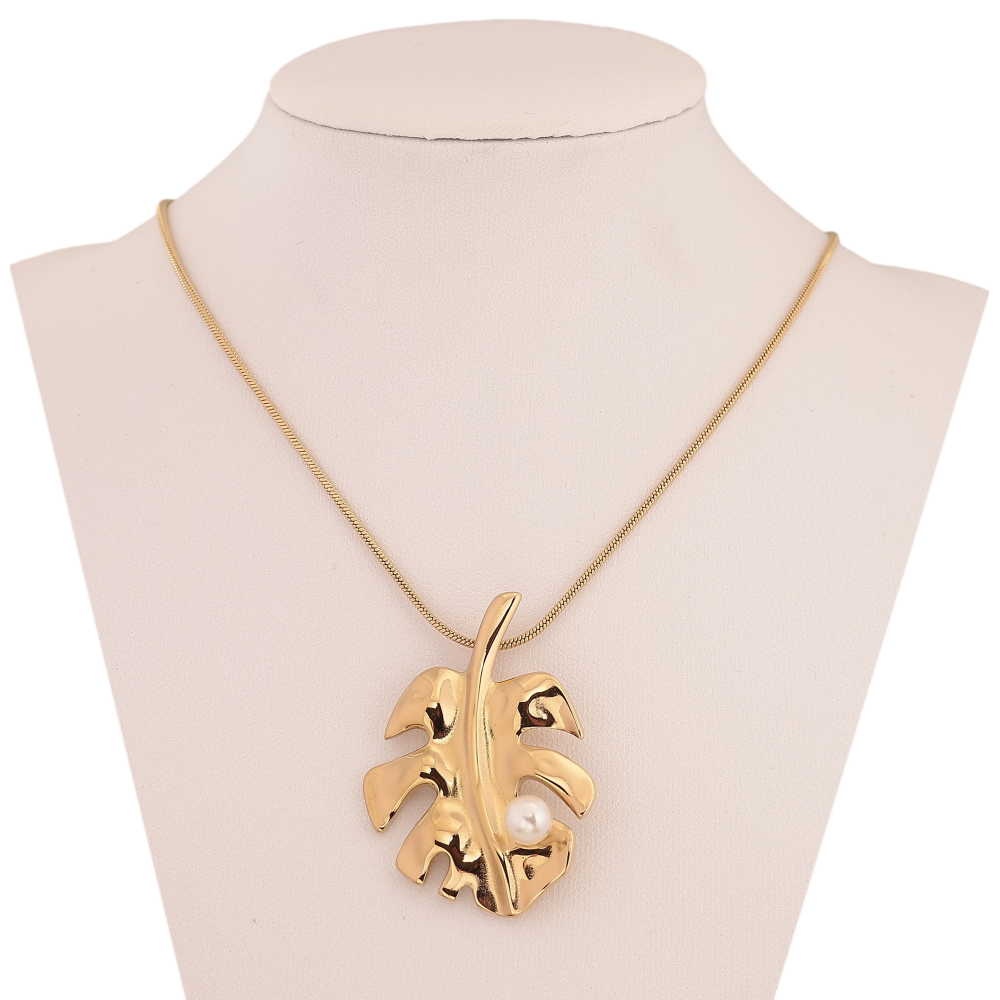Підвіска на ланцюжку Xuping ТТМ Stainless Steel колір 14К "Листок з перлиною" довжина 45-50см х 1мм