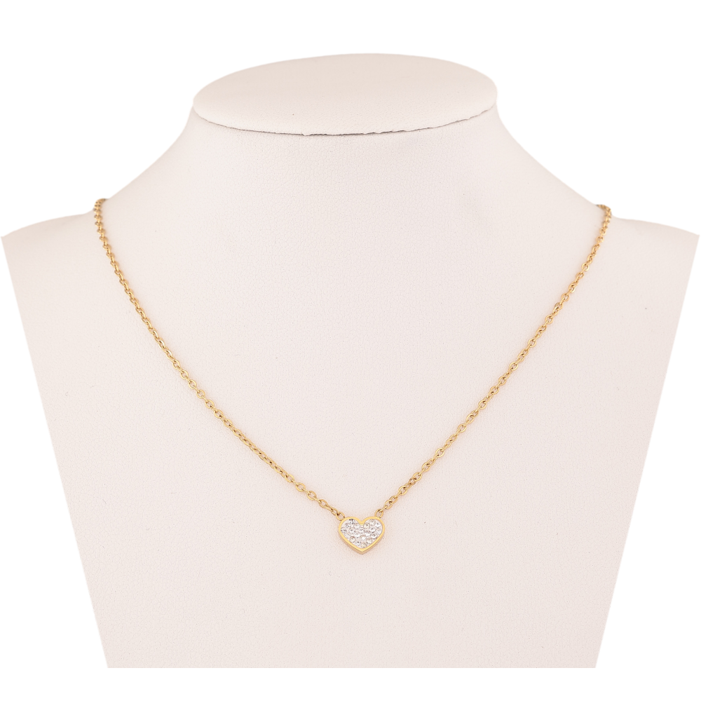 Підвіска на ланцюжку Xuping ТТМ Stainless Steel колір 14К "Серце з кристалами" довжина 38-42см х 1.5мм