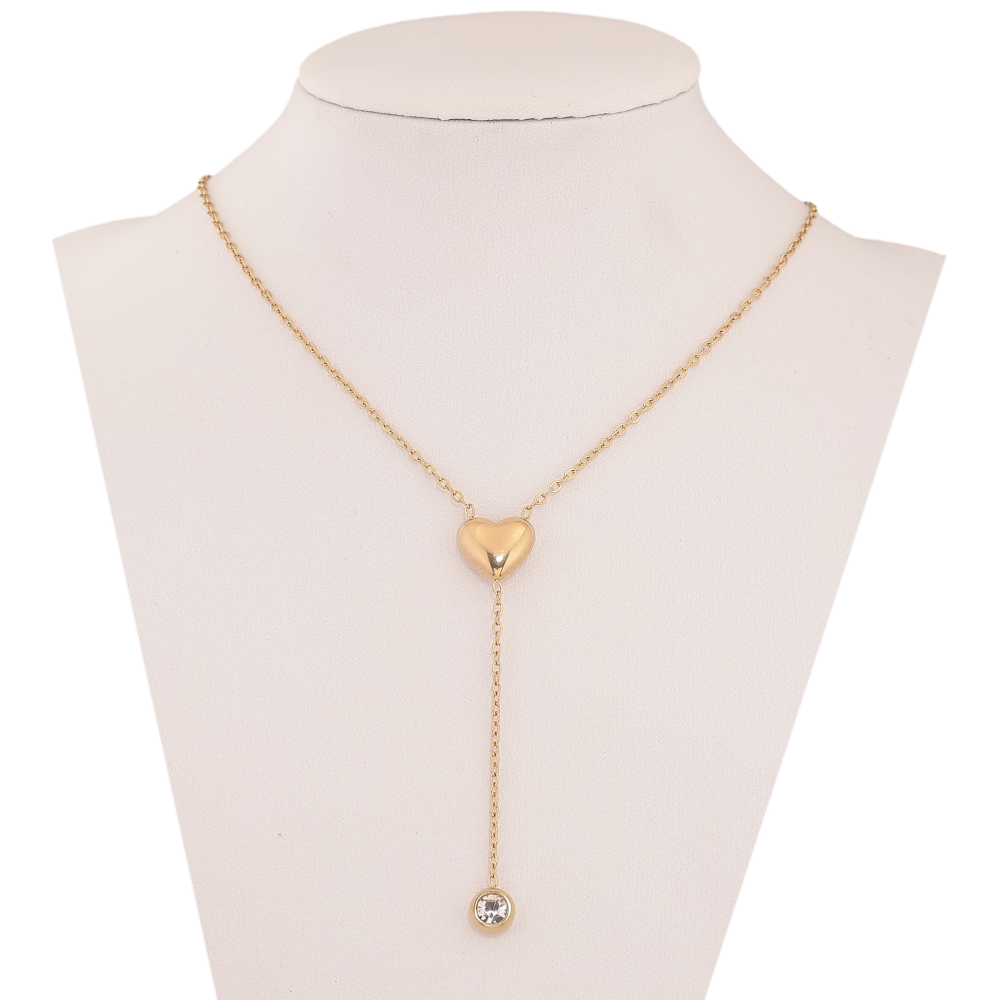 Підвіска на ланцюжку Xuping ТТМ Stainless Steel колір 14К "Серце з кристалом" довжина 45-50см х 1мм
