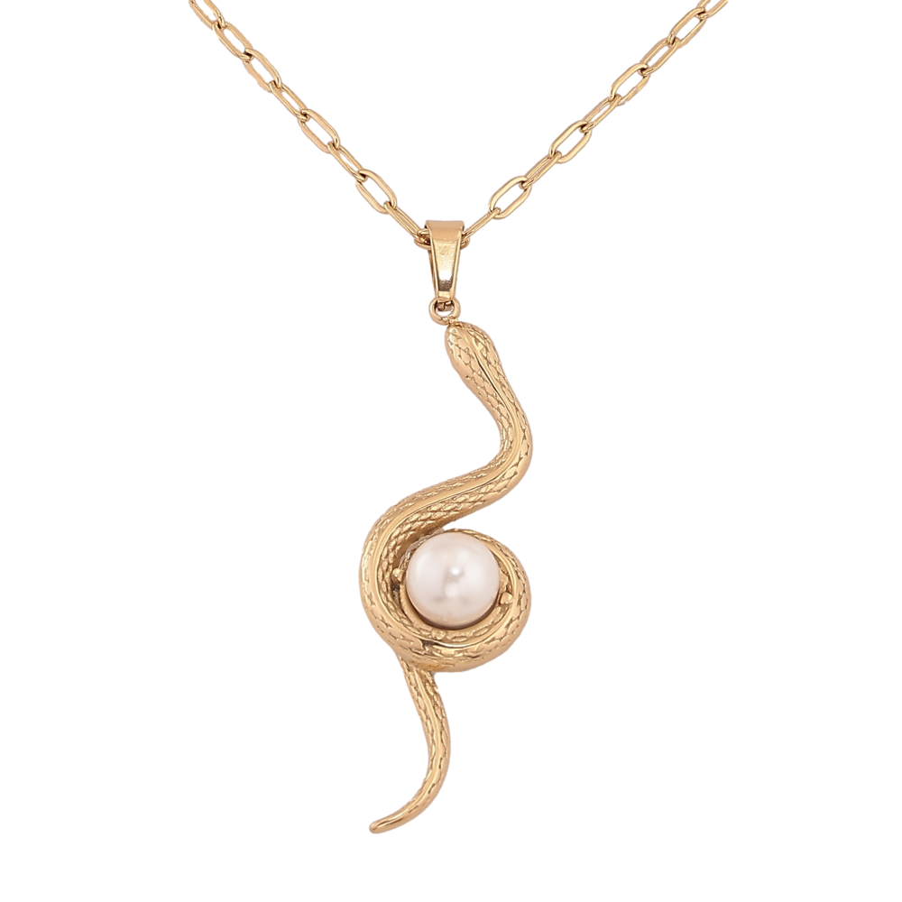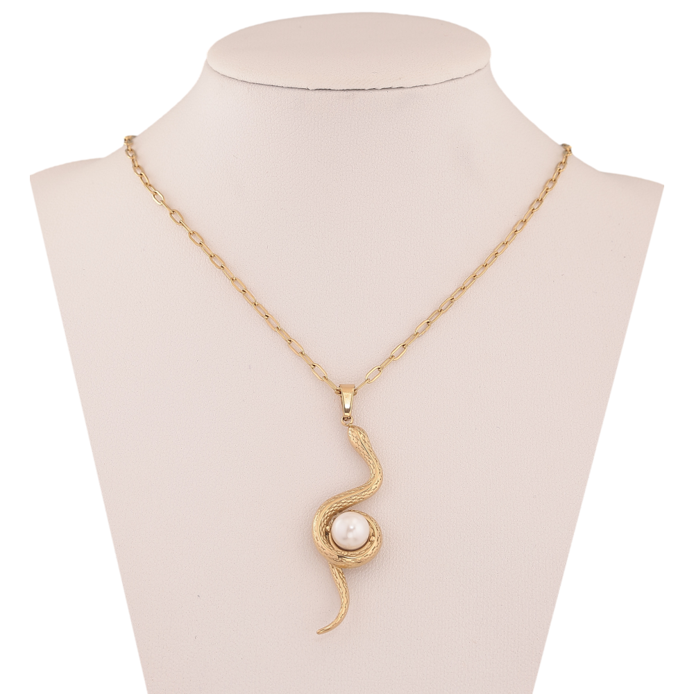 Підвіска на ланцюжку Xuping ТТМ Stainless Steel колір 14К "Змія з перлиною" довжина 45-50см х 2мм