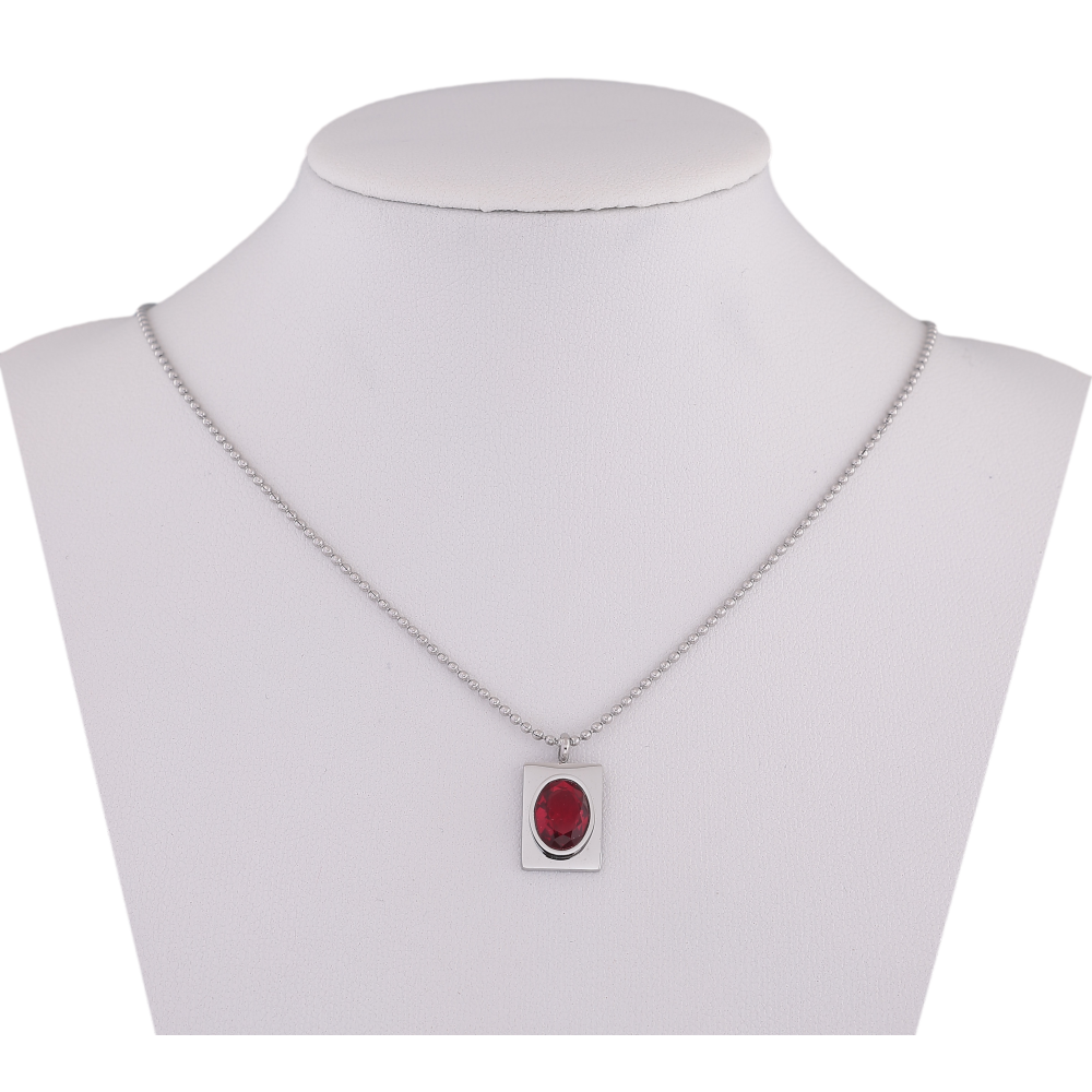 Підвіска на ланцюжку Xuping ТТМ Stainless Steel колір Родій "Червоний кристал" довжина 47-52см х 1мм