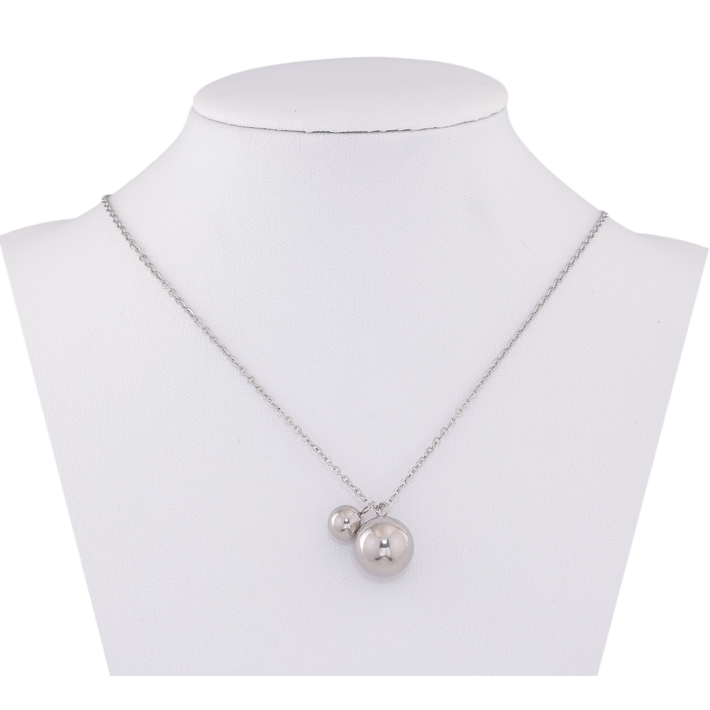 Підвіска на ланцюжку Xuping ТТМ Stainless Steel колір Родій "Дві кульки, ø 6мм та 10мм" довжина 45-50см х 1.5мм
