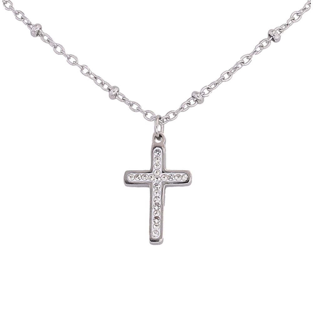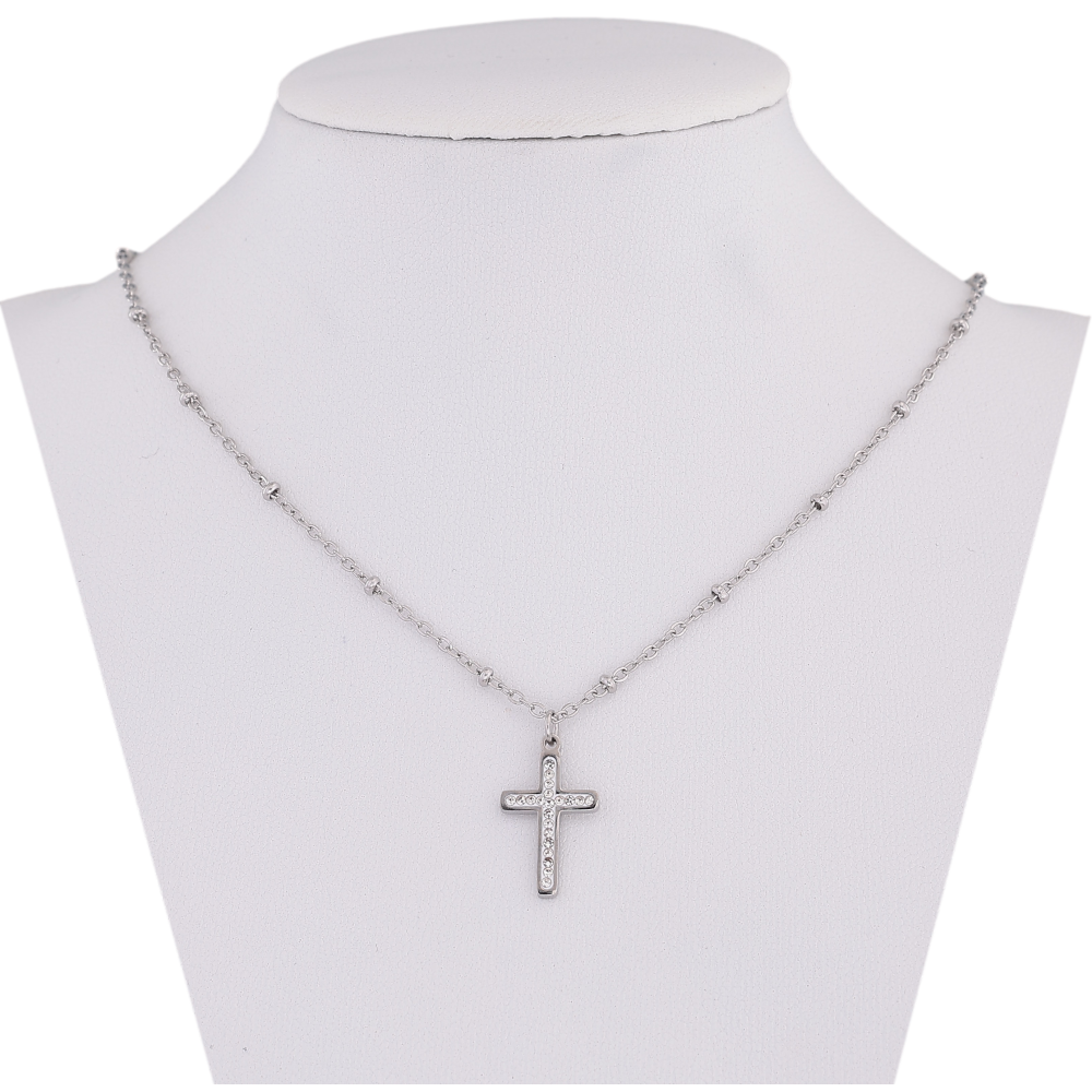 Підвіска на ланцюжку Xuping ТТМ Stainless Steel колір Родій "Хрест з кристалами" довжина 45-50см х 1.5-2мм