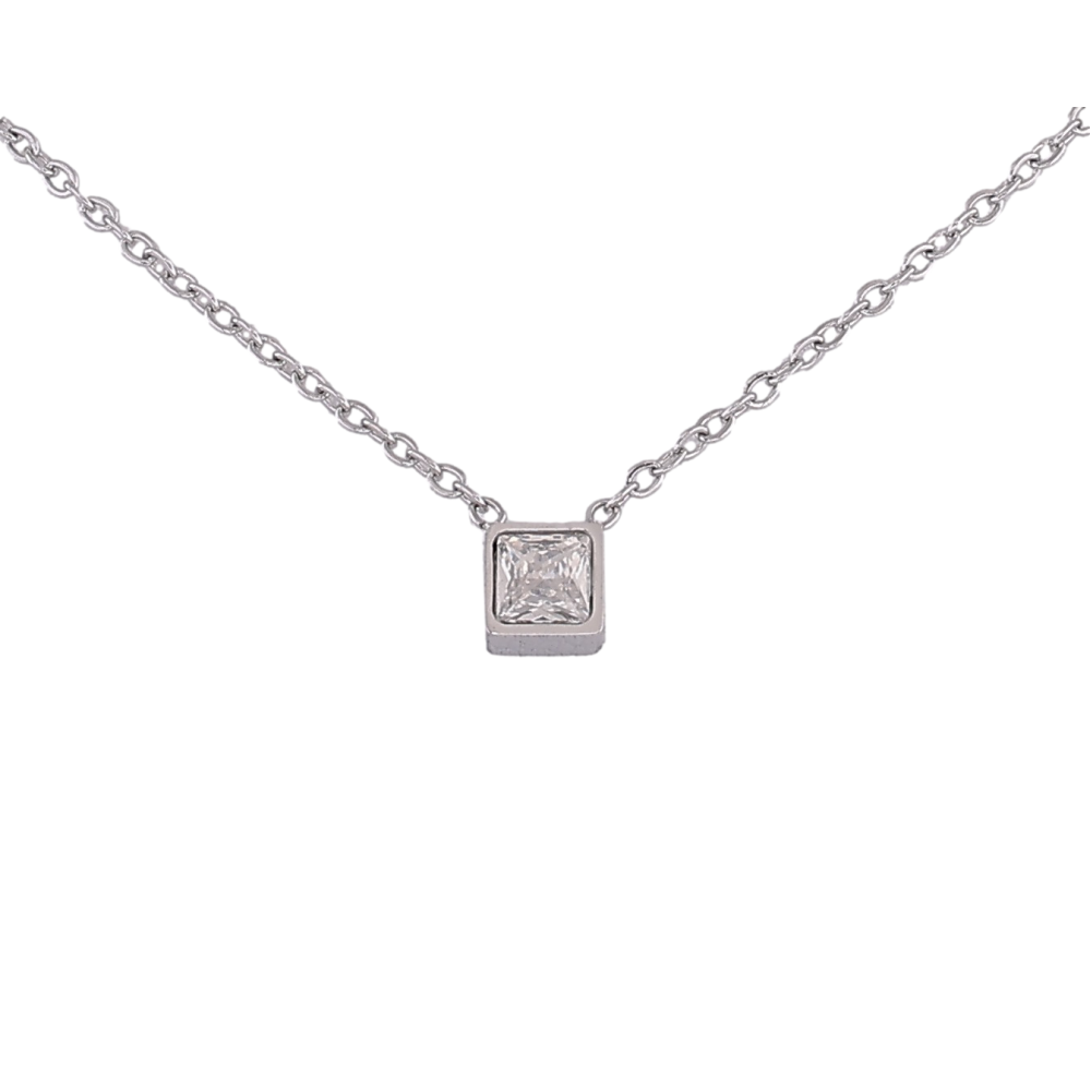 Підвіска на ланцюжку Xuping ТТМ Stainless Steel колір Родій "Кристал, 5х5мм" довжина 44-48см х 1.5мм