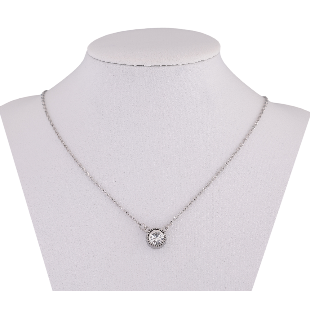 Підвіска на ланцюжку Xuping ТТМ Stainless Steel колір Родій "Кристал, ø 8мм" довжина 45-51см х 1.5мм
