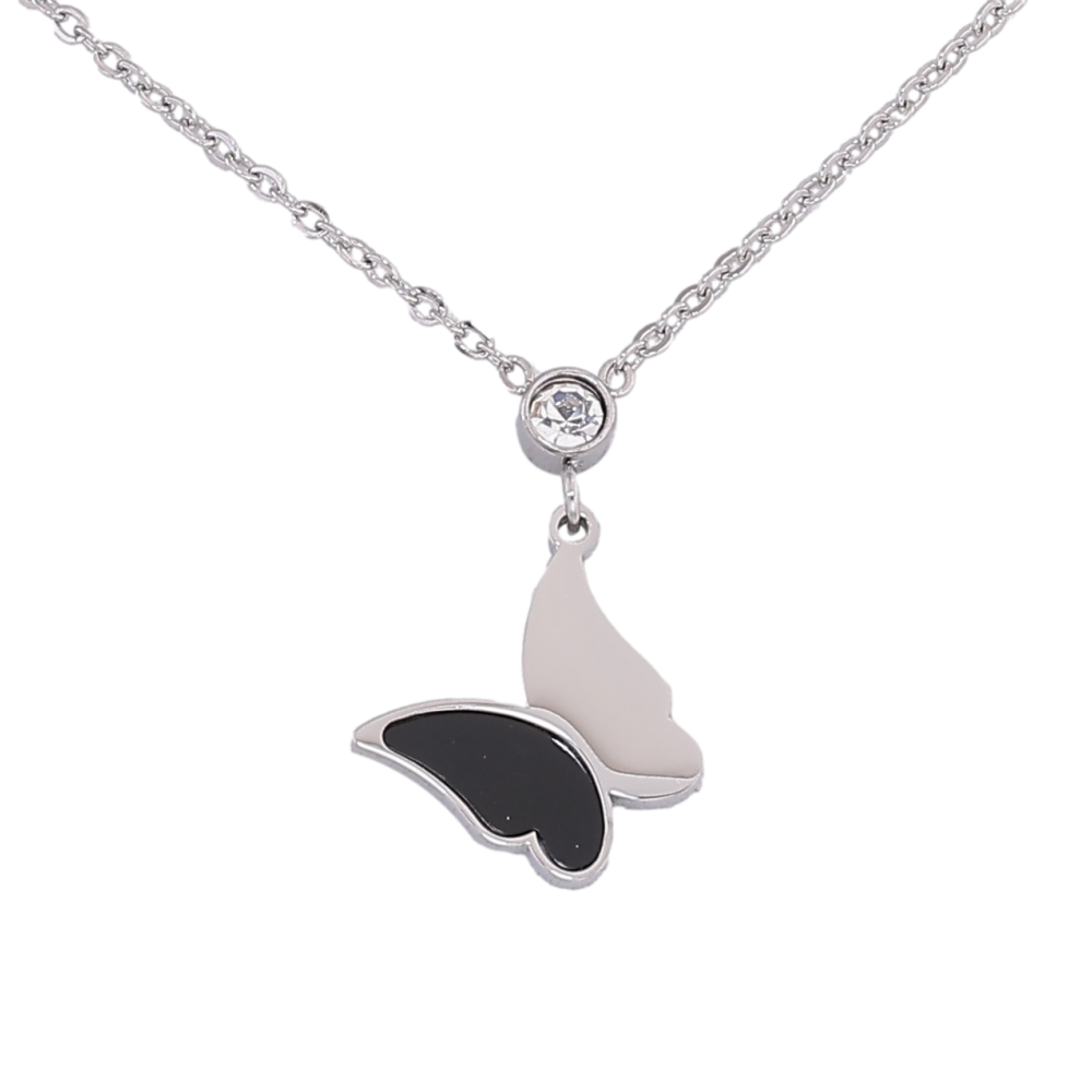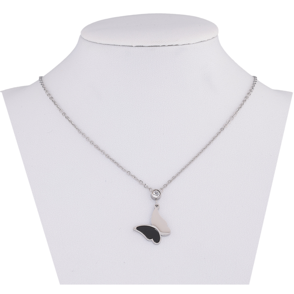 Підвіска на ланцюжку Xuping ТТМ Stainless Steel колір Родій "Метелик з чорною вставкою" довжина 41-46см х 1.5мм