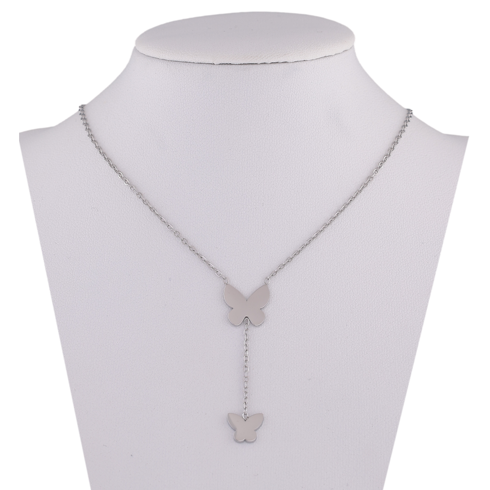 Підвіска на ланцюжку Xuping ТТМ Stainless Steel колір Родій "Метелики" довжина 39-45см х 1.5мм