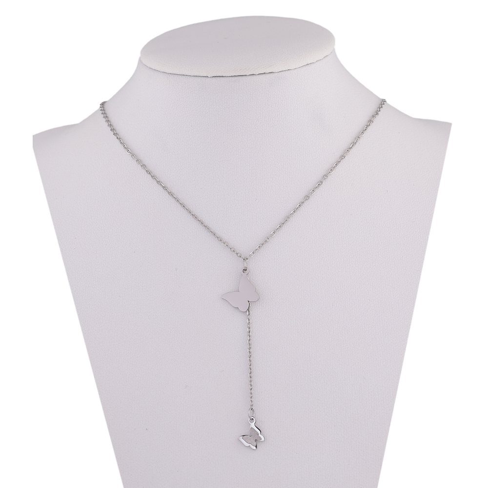 Підвіска на ланцюжку Xuping ТТМ Stainless Steel колір Родій "Метелики" довжина 45-50см х 1.5мм