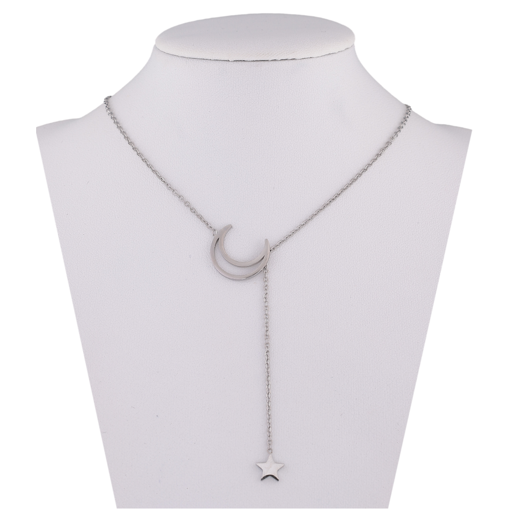 Підвіска на ланцюжку Xuping ТТМ Stainless Steel колір Родій "Півмісяць з зіркою" довжина 45-50см х 1.5мм