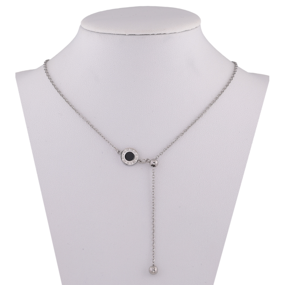Підвіска на ланцюжку Xuping ТТМ Stainless Steel колір Родій "Циферблат із чорною вставкою" довжина 42-47см х 1.5мм