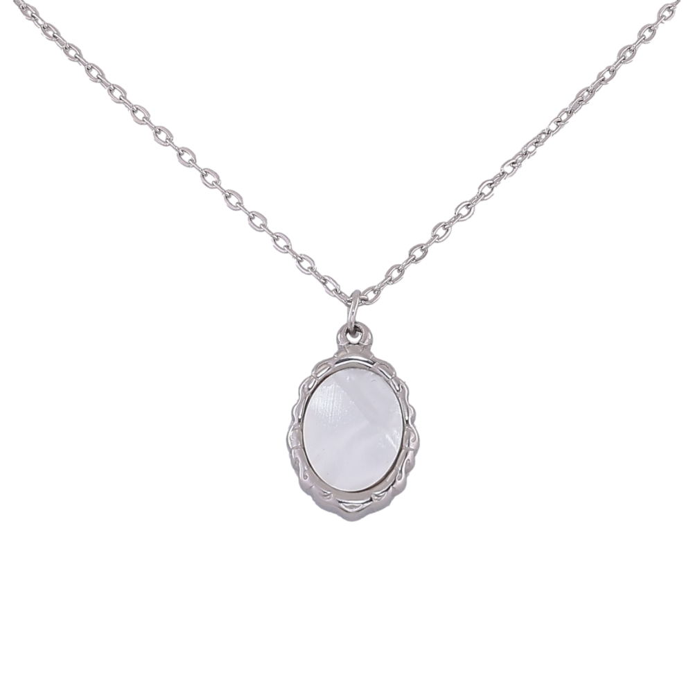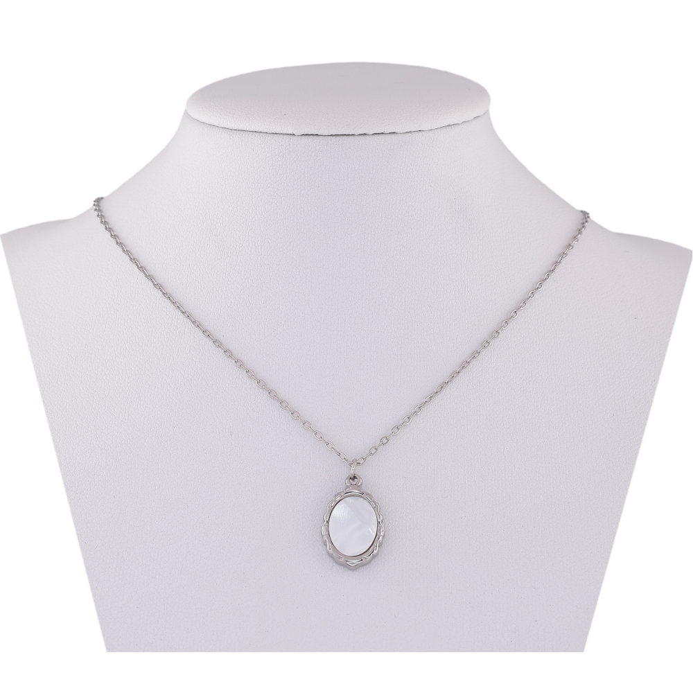 Підвіска на ланцюжку Xuping ТТМ Stainless Steel колір Родій "Візерунок з перламутровою вставкою" довжина 45-50см х 1мм