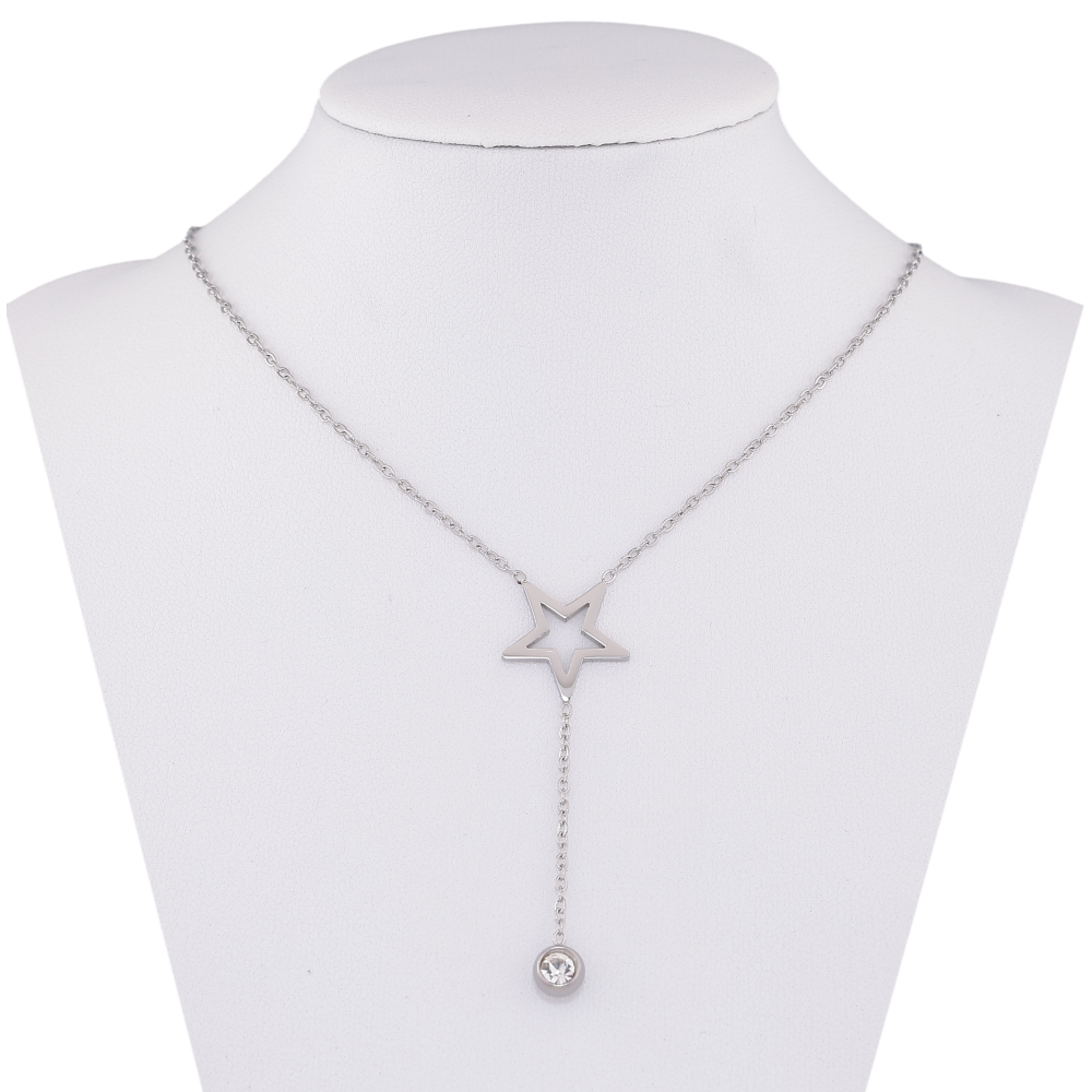 Підвіска на ланцюжку Xuping ТТМ Stainless Steel колір Родій "Зірка з кристалом" довжина 45-50см х 1.5мм