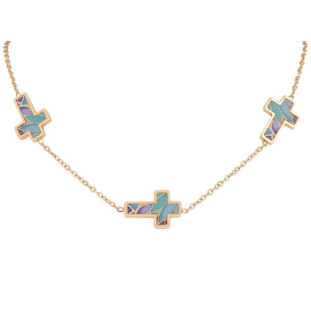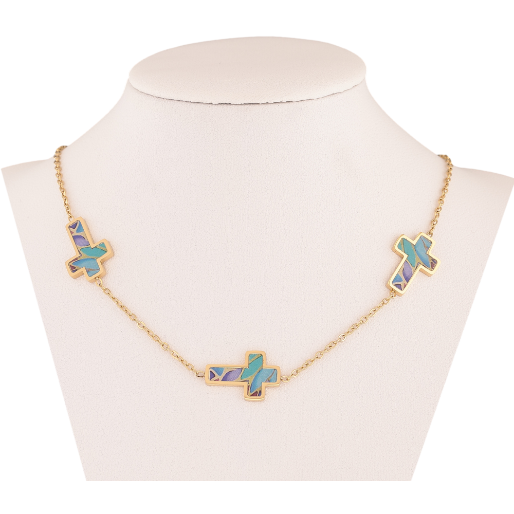 Кольє Xuping ТТМ Stainless Steel колір 14К "Хрестики з різнокольоровими вставками" довжина 42-47см х 2-12мм