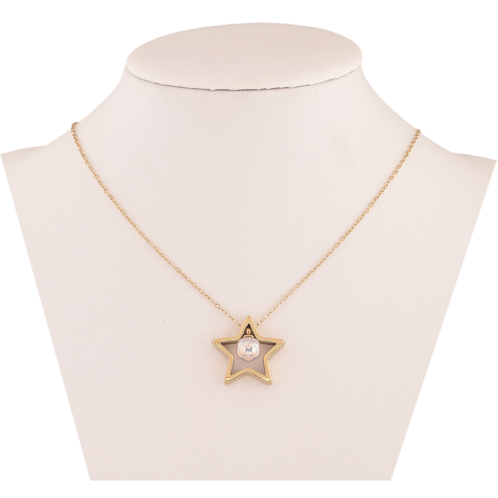 Підвіски на ланцюжку Xuping ТТМ Stainless Steel колір 14К "Зірка з перлиною" довжина 41-44см х 1мм