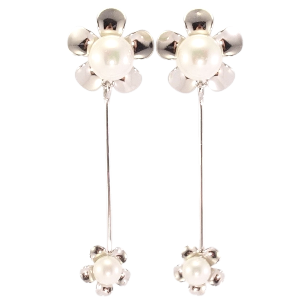 Серьги Xuping Родий пусеты Цветочки с жемчужинами