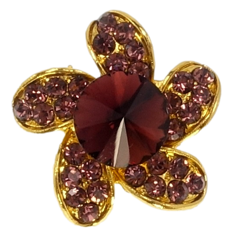 Брошь Цветок с бордовыми стразами