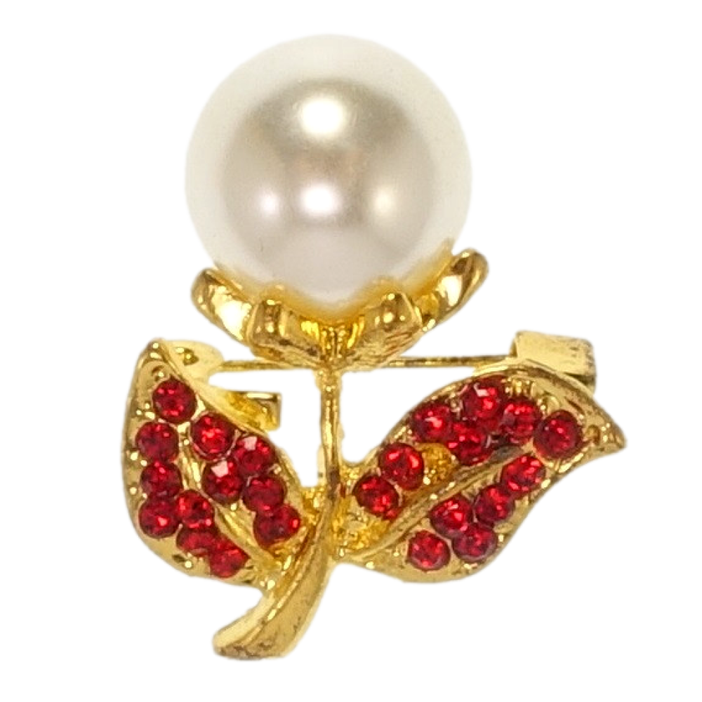Брошь Одуванчик с красными стразами и жемчужиной