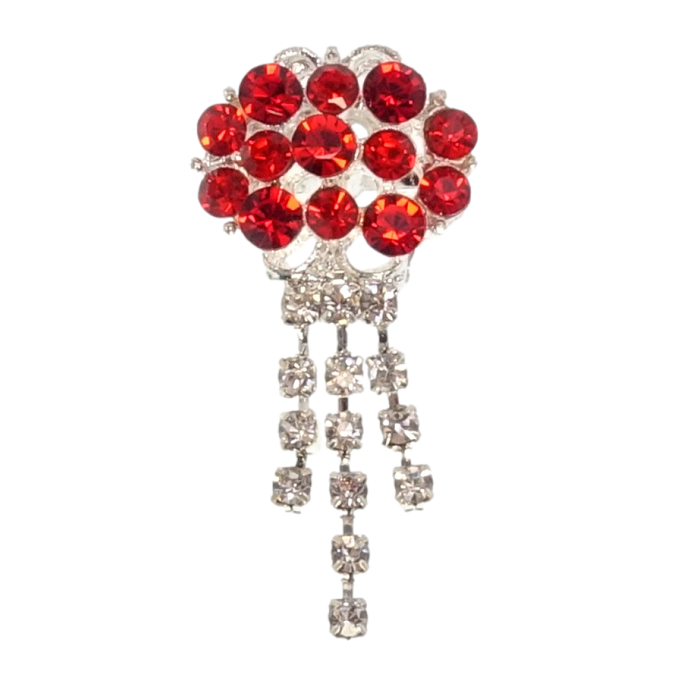 Брошь Овал с красными стразами и подвесками