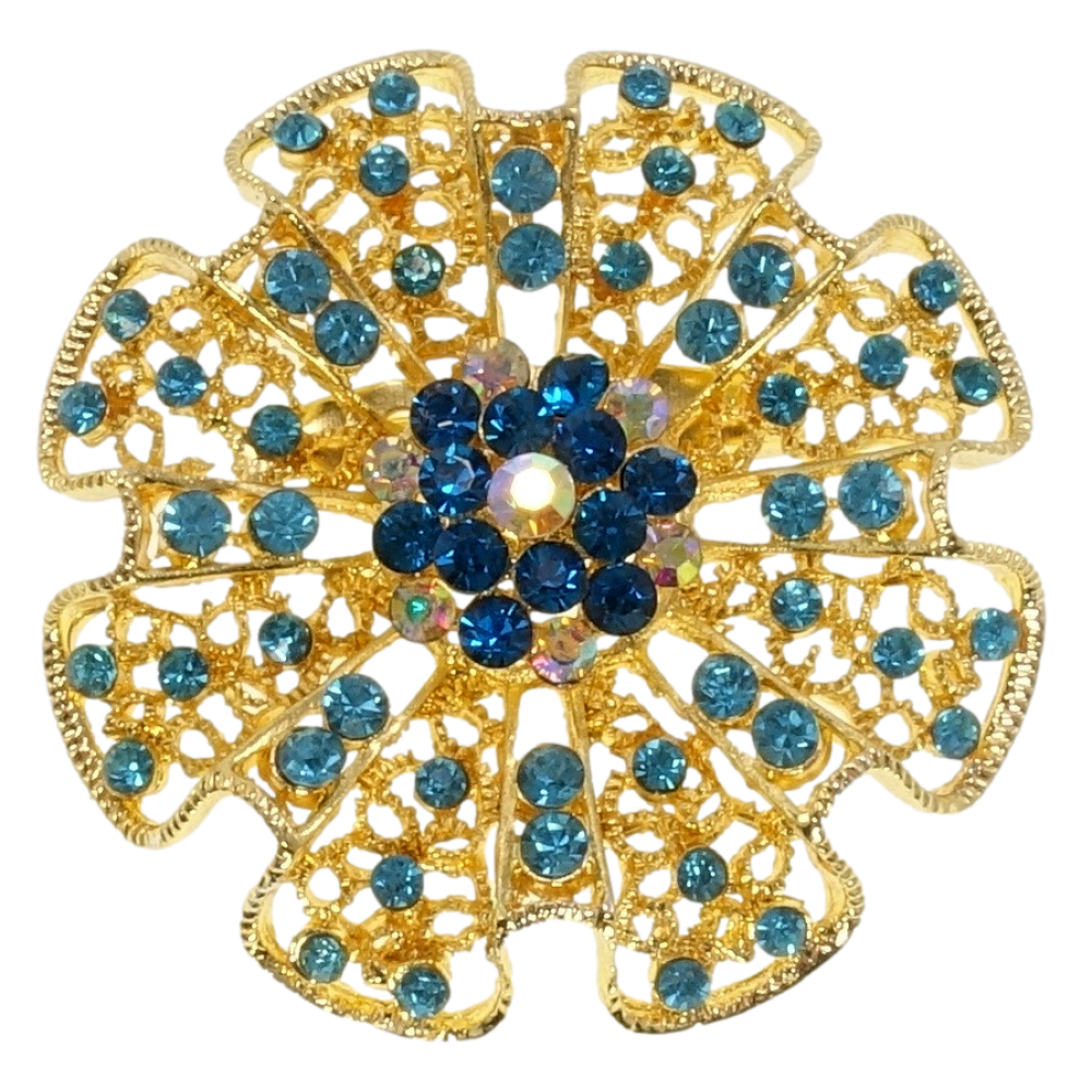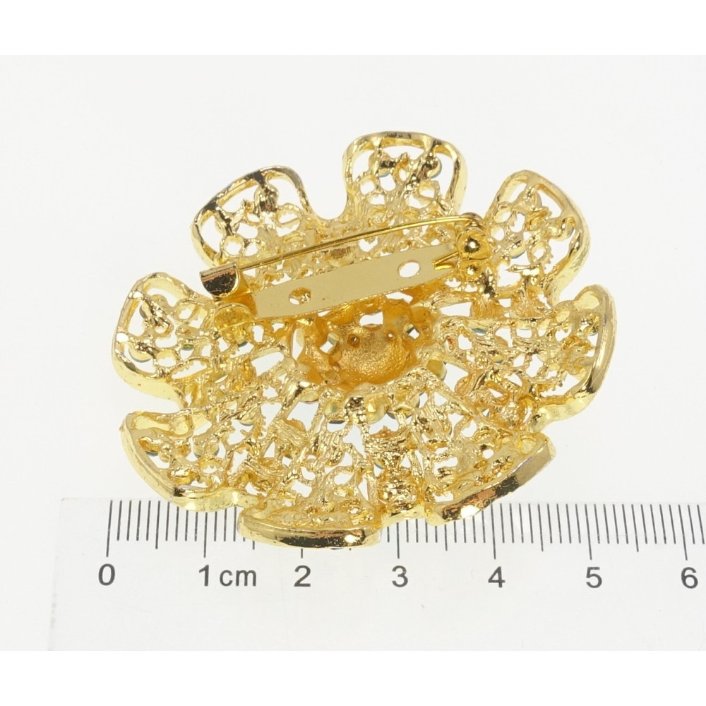 Брошь Ажурный цветок с бирюзовыми стразами
