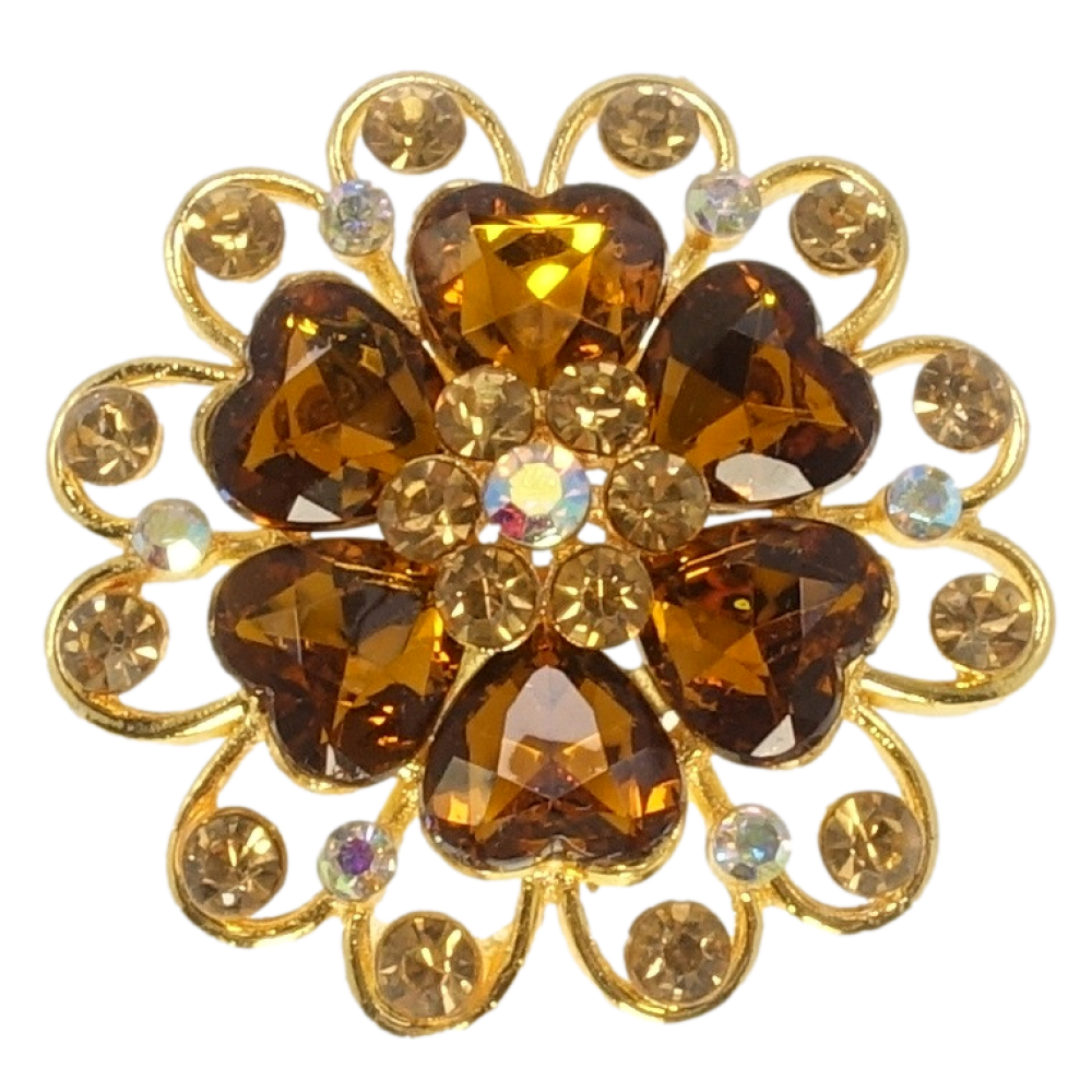 Брошь Цветок с коричневыми стразами