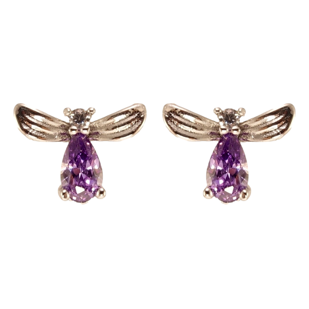 Серьги Xuping Родий пусеты Сиреневые кристальные мушки фото №1