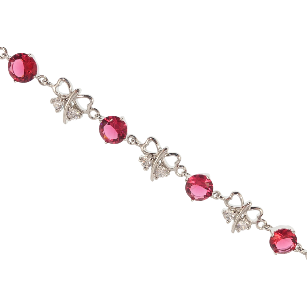 Браслет Xuping Родий Бабочки с малиновыми фианитами размер с доп.замком 18.5,22см х 6-10мм