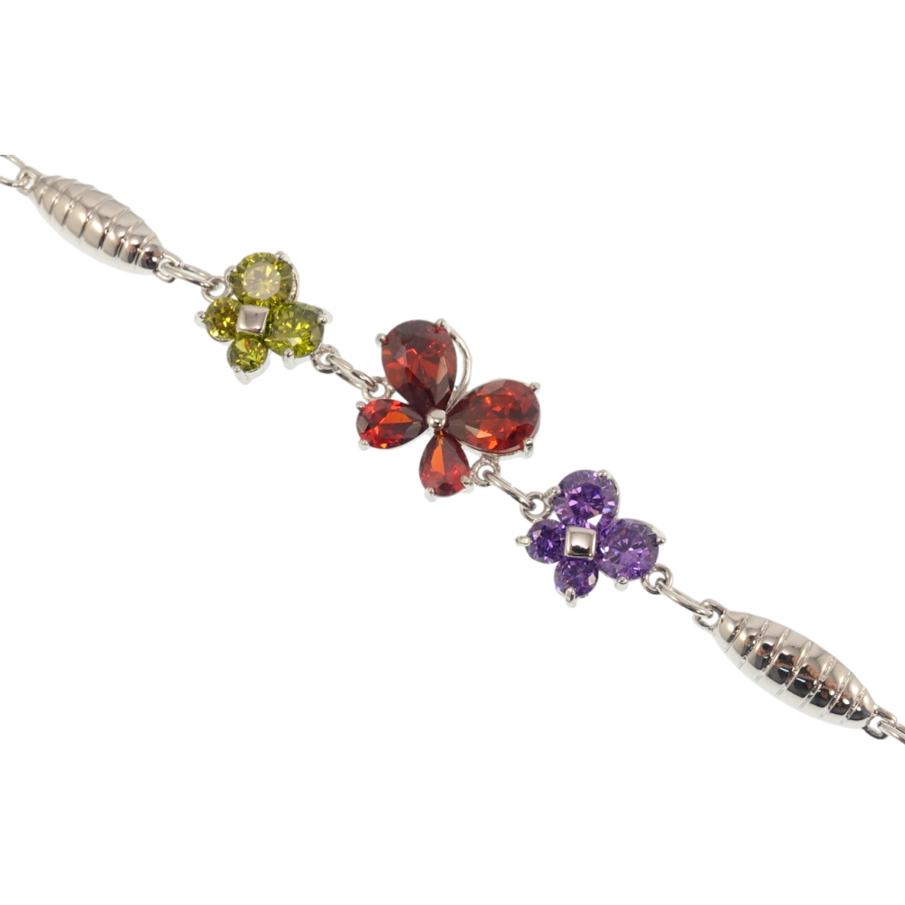 Браслет Xuping Родий Бабочки цветные фианиты размер с доп.цепочкой 18-24см х 6-7мм