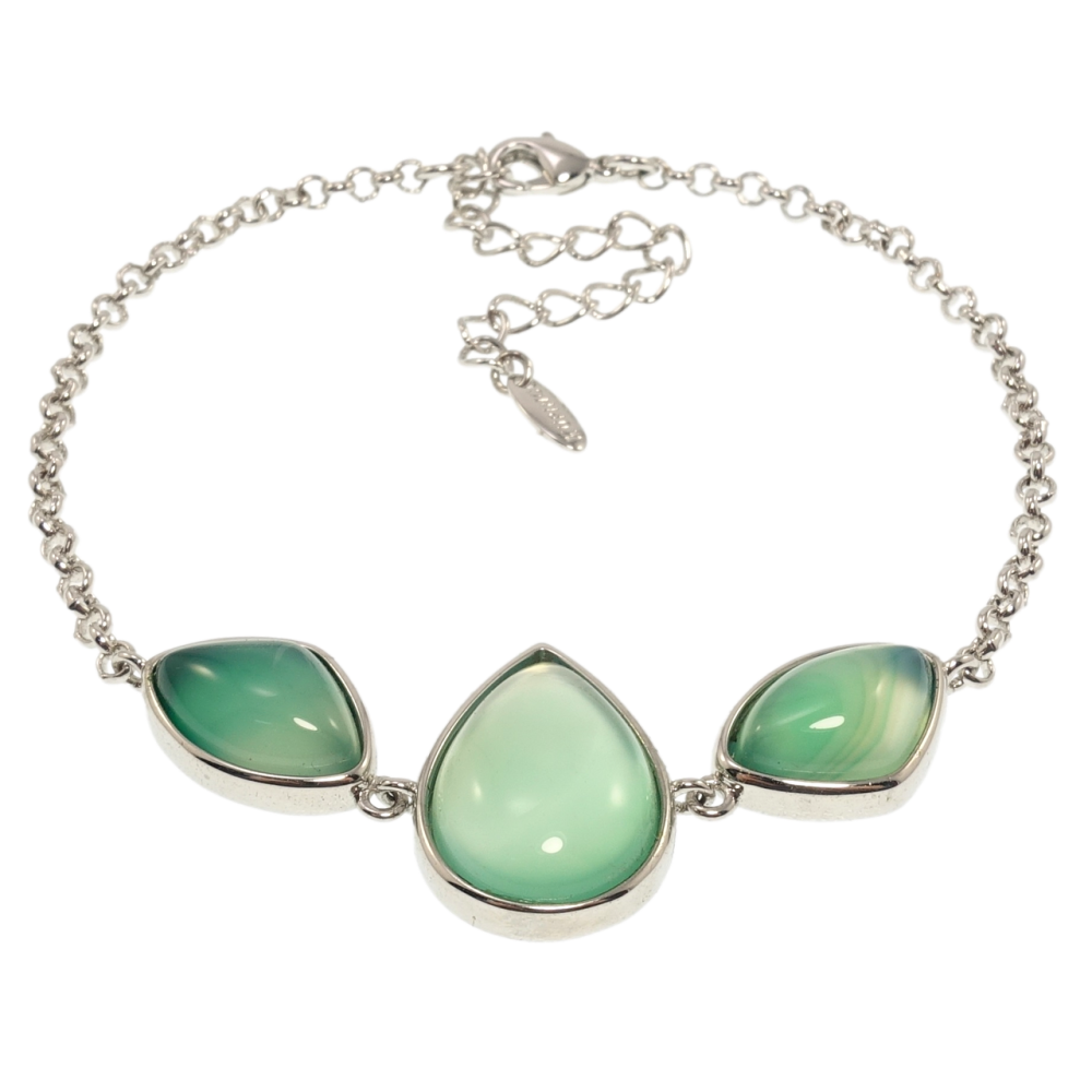 Браслет Xuping Родий Вставка три зеленых камня размер с доп.цепочкой 19-24см х 2мм