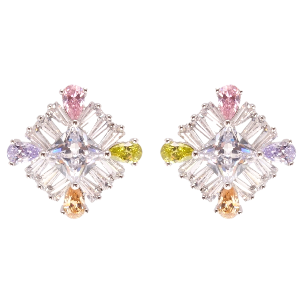 Серьги Xuping Родий пусеты Кристальные ромбы 15х15мм фото №1